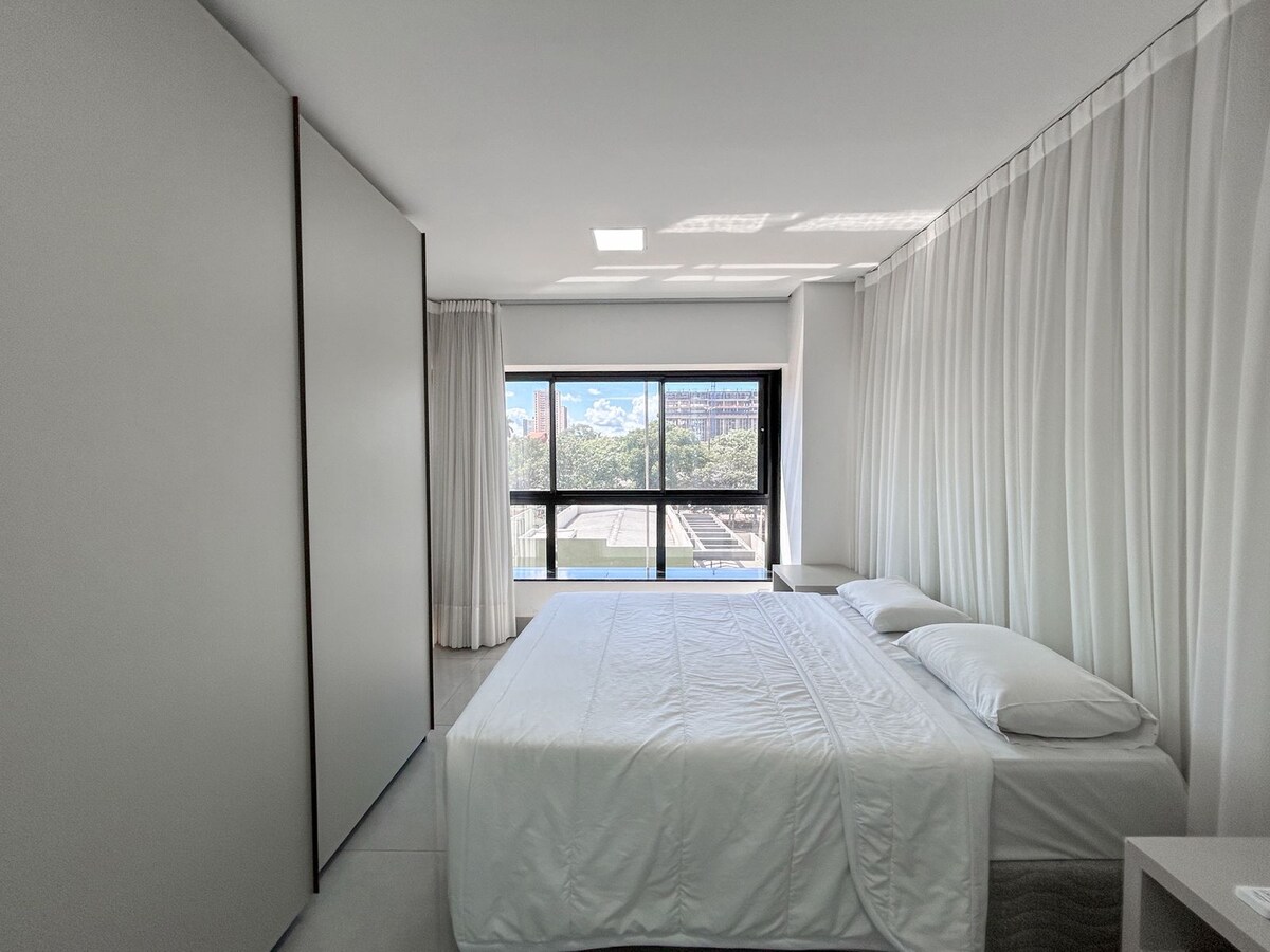 Apartamento elegante, aconchegante e recém-reformado, no coração de Campo Grande! Com 2 quartos (1 suíte) com Ar-condicionado, 2 banheiros e excelente localização: a 100m do Shopping Campo Grande, mercado e vários restaurantes. Com Wi-Fi, 2 smart TVs, geladeira, micro-ondas, cooktop, forno, cafeteira, airfryer, máquina de lavar roupas, chuveiros eletrônicos e torneira da cozinha tem água quente com filtro d’água. Roupas de cama/banho e 2 vagas de garagem. Conforto e praticidade para sua estadia.