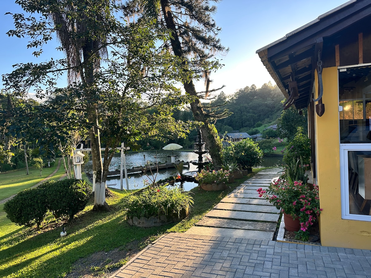 Cottage dikelilingi alam dan pemandangan pegunungan yang luas di dekat Lagoa da Harmonia yang indah. Tempat yang sangat nyaman untuk menikmati akhir pekan bersama keluarga dan bersantai bersama alam dengan kenyamanan dan privasi. Rumah ini terletak di lokasi seluas 50 hektar di mana ada juga dua rumah lainnya, salah satu ibu rumah tangga dan satu lagi orang tua saya di mana mereka menghabiskan akhir pekan. Di lokasi kami memiliki domba, kuda, bebek...Selain anjing kami Zuma yang menyambut pengunjung baru.