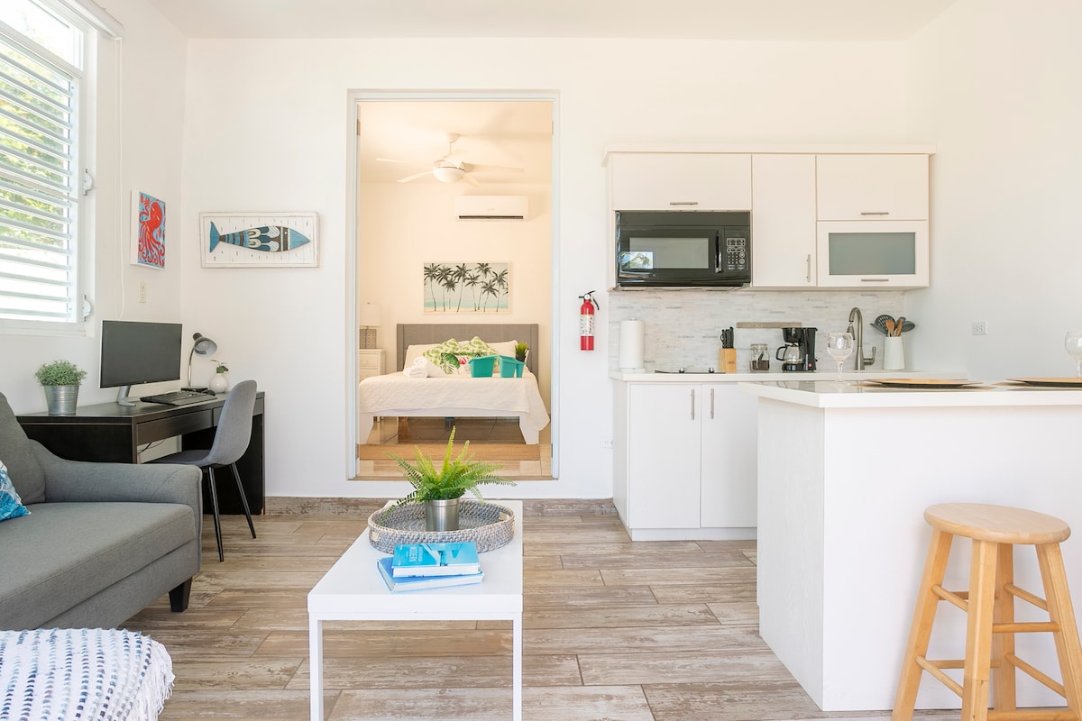 Tempat peristirahatan tepi pantai yang sempurna! Nikmati pemandangan laut dan suara ombak yang menenangkan. Rumah kami yang cerah dan bersih menawarkan kenyamanan dalam suasana tropis. Terletak di lingkungan tinggal menawan di tepi pantai, area ini sangat ideal untuk menjelajahi pulau ini. Rumah ber - AC ini memiliki internet cepat dan hanya beberapa menit dari tempat makan, belanja, dan petualangan! Rasakan Puerto Riko seperti masyarakat lokal!