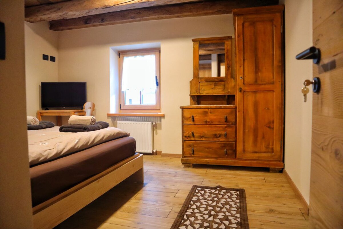 Rumah kami hangat dan ramah, berbau kayu, terletak di pusat kota. Apartemen nyaman di sepanjang area pejalan kaki Cortina, di lantai pertama rumah Ampezzo khas dari tahun 1800 - an, mudah untuk memiliki segalanya di ujung jari Anda. Tempat ini terdiri dari aula masuk besar, kamar tamu, dapur, dan area makan, kamar tidur ganda, kamar tidur twin, kamar mandi dengan bak mandi/pancuran. Dilengkapi dengan mesin cuci piring, mesin cuci, pengering, TV, Wi - Fi, dan semua aksesori yang diperlukan.