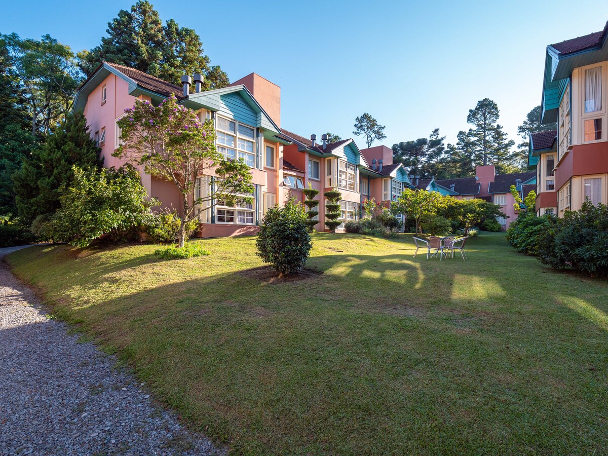 Nikmati momen unik di Serra Gaúcha! Menginap di flat lengkap dengan struktur hotel dan kenyamanan rumah. Perapian, kolam renang yang dipanaskan, sauna, ruang bermain, gym, dan banyak lagi. Flat kami berada di lokasi yang tenang, hanya 700 meter dari Katedral Batu (kartu pos/tengah Canela). Tempat ini berlokasi di jalan perumahan berhutan, dengan akses mudah ke kafe, restoran, dan toko. Di samping area hijau, kontak dengan alam. Layanan sarapan (biaya tambahan) diantarkan ke apartemen.