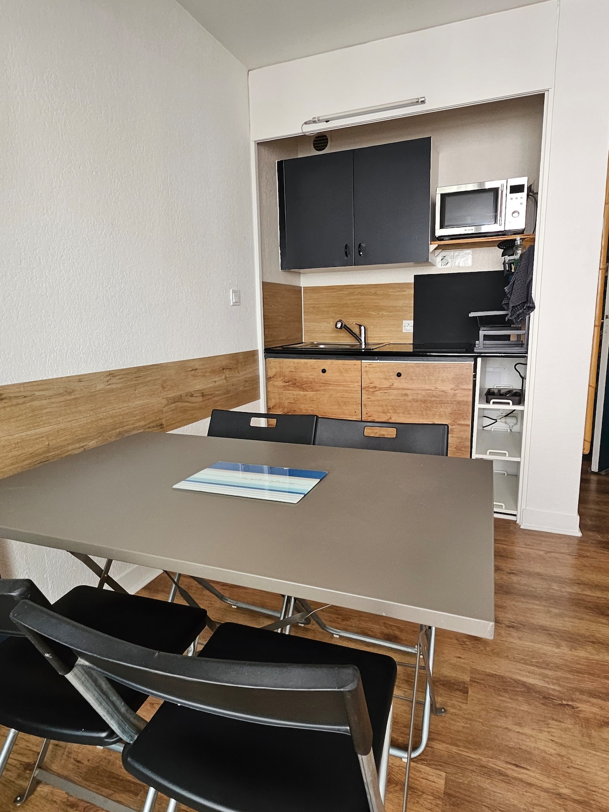 Studio tepi pantai seluas 22 m2 yang nyaman dengan balkon yang menawarkan pemandangan laut yang indah. Terletak di lantai 2 hunian yang tenang dengan lift, studio ini menikmati lokasi yang bagus, dekat dengan halte bus, toko, restoran, pasar, apotek, dll. Ini mencakup pintu masuk dengan ruang ganti besar, kamar mandi, dapur kecil, dan ruang tamu yang nyaman dengan perlengkapan tempat tidur berkualitas dan TV. Suasana yang sempurna untuk menikmati masa inap yang tenang menghadap ke laut, ideal untuk pasangan.