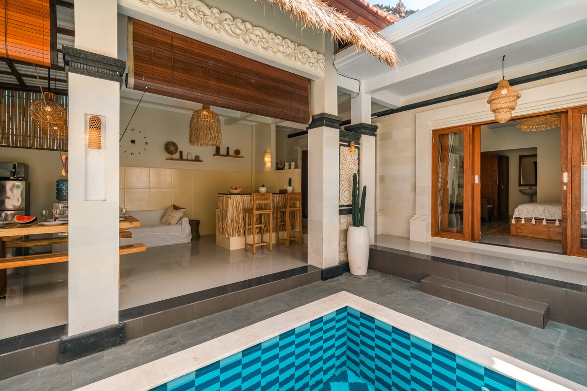 Hunian dua lantai kami menangkap esensi ketenangan, menampilkan ruang tamu yang luas, suite utama yang luas dengan bak mandi en - suite, kamar mandi dan lemari walk - in, kitchen island lengkap, dan kolam renang pribadi yang dikelilingi oleh oasis tropis yang rindang. Kami menawarkan lebih dari sekadar menginap; kami menciptakan pengalaman. Nikmati pijat santai di vila, atau malam nonton film dengan proyektor dan popcorn. Setiap momen dipilih untuk meremajakan dan menginspirasi, menciptakan masa inap yang unik bagi Anda.