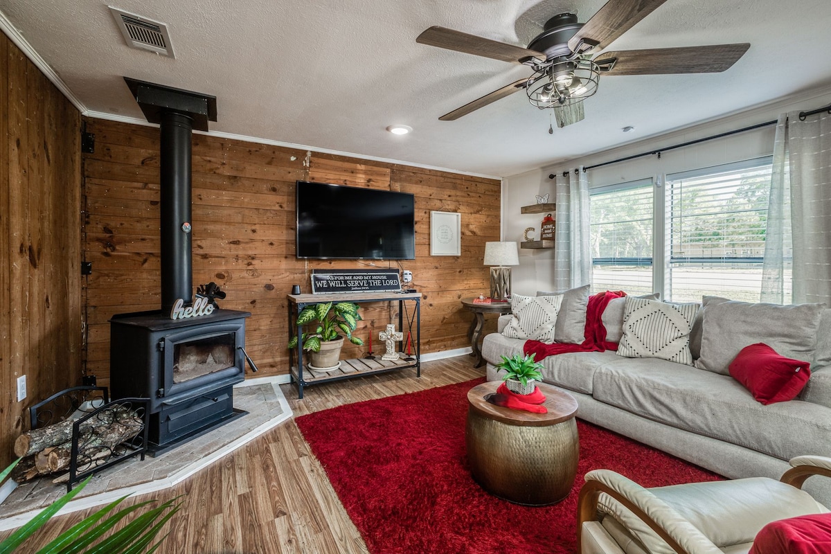 Quaint cottage nestled among three acres of towering trees. Featuring a large, newly updated kitchen, spacious bedroom, and lots of outdoor living space including a hot tub and fire pit. This cabin in the woods offers the seclusion and East Texas beauty you seek, yet is just minutes away from numerous restaurants and attractions with easy access to Interstate 20 and Toll 49. Retreat to the large deck and gaze at the stars, or grab a blanket and enjoy s’mores by the fire.