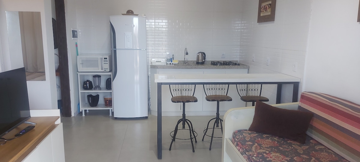 Apartemen modern, menghadap pantai menghadap laut, berlokasi di kondominium dengan penjaga. Lokasinya sangat baik, bersebelahan Praça do Farol, di tengah Capão dengan segala fasilitas. Ada dua tempat kecil di dekatnya. Tempat ini memiliki ruang mobil, parkir tertutup. Dapur yang sangat praktis dengan kompor induksi, kulkas/freezer, microwave, pembuat kopi, dan perlengkapan dasar dapur. Ruang tamu dengan tempat tidur, TV dan internet Wi - Fi. Kamar dengan 1 tempat tidur double dan 1 tempat tidur single. Split: kamar tidur dan ruang tamu.