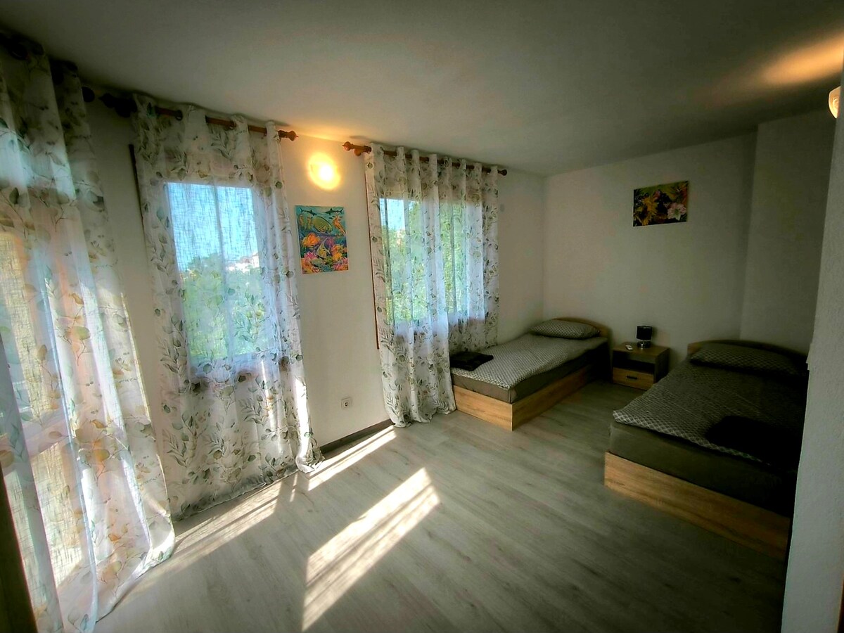 Apartemen 2 kamar tidur baru hanya 1 menit dari zona pejalan kaki utama Varna! Nikmati interior bergaya, dapur lengkap, dan jacuzzi dalam ruangan pribadi – sempurna untuk bersantai setelah seharian keluar. Sangat cocok untuk pasangan, keluarga, atau pelawat bisnis. Wi-Fi cepat, AC di setiap kamar, dan semua kenyamanan untuk masa inap yang luar biasa di pusat kota. Apartemen ini terletak di lantai dasar 2 tempat parkir gratis 🅿️ 🚗 🚙