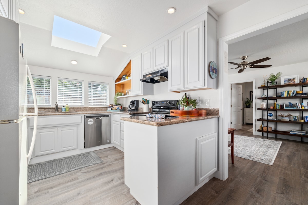 Baru direnovasi dengan lantai kayu keras & peralatan rumah tangga. Habiskan liburan pantai Anda berikutnya di pusat Desa Capitola, 3 menit berjalan kaki ke pantai, restoran & pusat perbelanjaan. Rumah 2 lantai 2 kamar tidur yang indah ini memiliki balkon pribadi dengan BBQ & bisa menampung hingga 6 tamu. Pengisi daya EV lantai 2 di garasi. Fasilitas Nyaman Termasuk: *Check-in mandiri * Internet Nirkabel * Ramah Anjing - 1 anjing (40lbs +/- maks) *Parkir untuk 1 mobil di garasi terhubung (dengan pengisi daya EV) *Roku TV dengan Netflix, Disney+, YouTuber