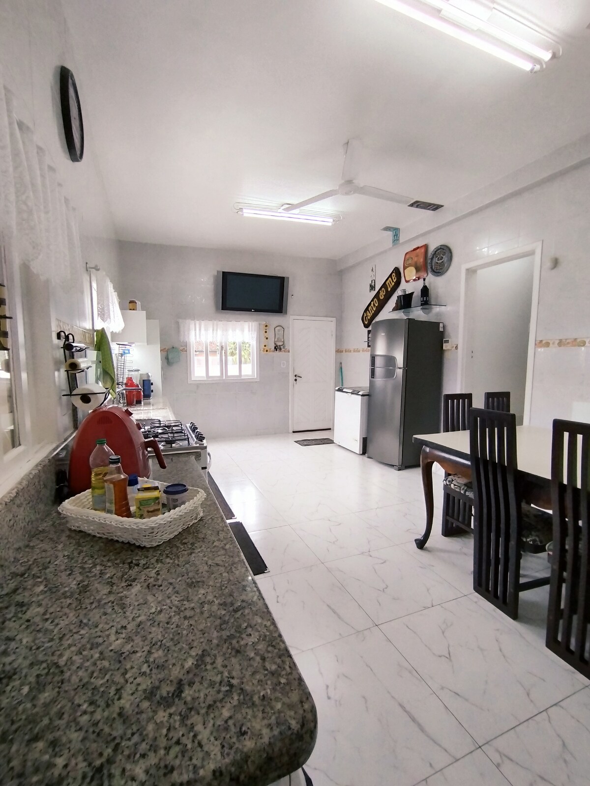 Rumah 1 blok dari laut, dengan 3 suite ber-AC, semuanya dengan pancuran gas dan Wi-Fi. Kolam renang yang dipanaskan dengan aktivasi Wi-Fi. Ruang tamu dengan TV 82". Dapur lengkap dengan brewery, freezer, oven, microwave, dan peralatan makan. Mesin cuci dan pengering, kursi pantai, payung pantai, dan seprai. Kenyamanan, teknologi, dan kepraktisan untuk masa inap Anda di Itapoá.
