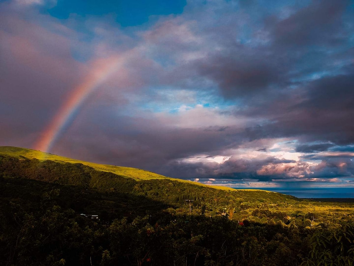 Selamat datang di The Flower Bed, kabin rumah kaca di lereng Mauna Loa, Big Island dengan segala yang Anda butuhkan untuk liburan yang luar biasa. Bersantai di patio luar ruangan, bersantai dengan buku tentang kursi empuk, nikmati pancuran hujan. Lihatlah bintang - bintang yang menakjubkan dan terbuai untuk tidur dengan suara alam malam. Bangunlah dengan burung dalam nyanyian dan sinar matahari pagi yang menyaring melalui jendela. Cicipi bunga yang bisa dimakan, gunakan sedikit lavender untuk ketenangan, dan nikmati pemandangan laut peekaboo. Anda tidak akan menyesal menginap beberapa malam!