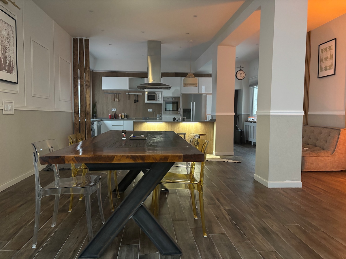 Ini adalah apartemen yang luar biasa. Loteng berukuran 190 m2 (2045 ft2) dan memiliki semua fasilitas. Anda dapat menggunakan ruang tamu, ruang makan, dan dapur. Dan parkir dengan biaya tambahan. Tempat ini ideal untuk para profesional yang datang ke Madrid untuk bekerja karena memiliki area khusus untuk itu. Menampilkan internet berkecepatan tinggi, Netflix, dll. Hak untuk meminta uang jaminan tambahan dilindungi. Ada pengawasan video 24 jam di pintu jalan dan garasi. Ada juga alarm.
