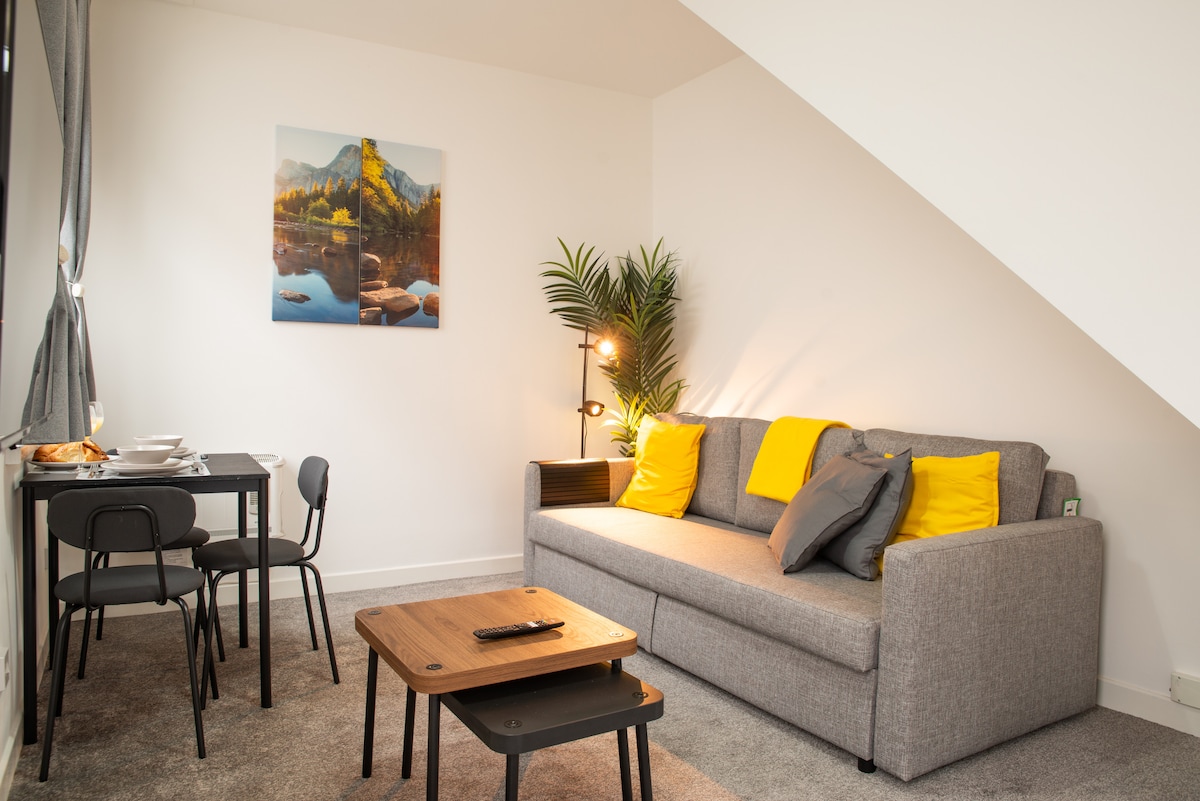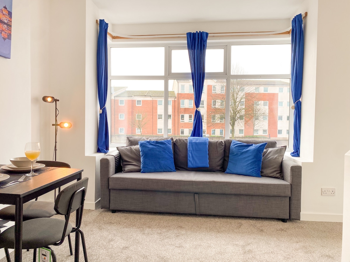 Apartemen 1 kamar tidur yang nyaman, dengan tempat tidur sofa. Jantung kota, 15 menit berjalan kaki ke stadion 5 menit ke stasiun kereta api. Berbasis di luar jalan kota, di mana Anda dapat menemukan restoran yang menyajikan makanan dari seluruh penjuru dunia, toko, dan takeaways sepanjang malam, ini benar - benar salah satu lokasi terbaik di kota untuk menginap, karena apa pun alasan kunjungan Anda, Anda akan menemukan apa yang Anda butuhkan. apartemen juga memiliki parkir off - road, dan pusat kebugaran di seberang jalan, dengan tiket gym yang tersedia (£ 5pp/hari)