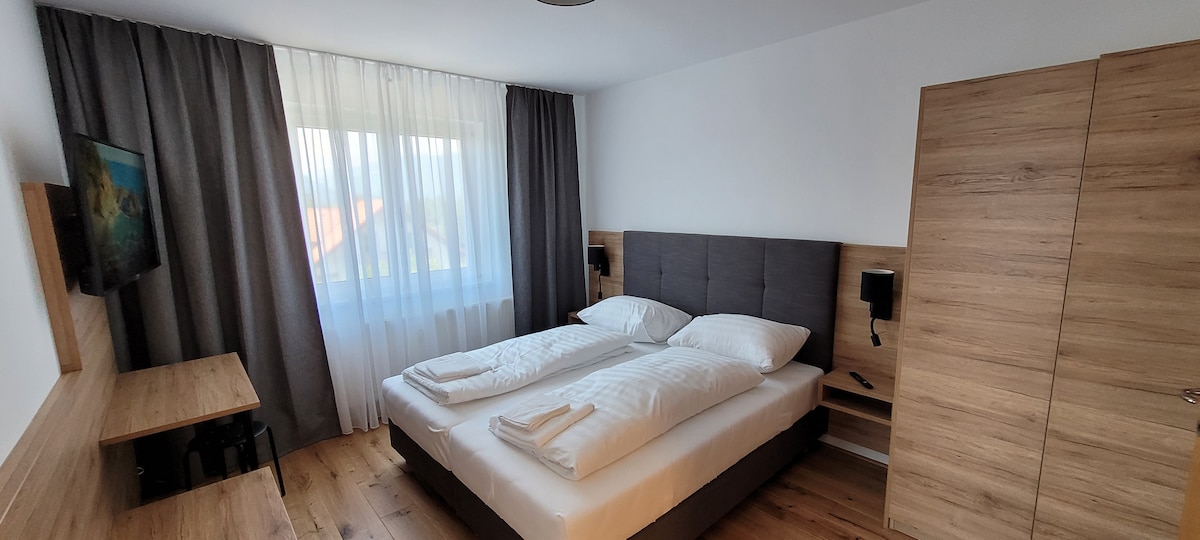 Apartemen tertutup dan berperabot nyaman (sekitar 45 meter persegi) untuk penggunaan pribadi untuk 2 -3 orang, terdiri dari area memasak tamu dengan tempat tidur sofa, 1 kamar tidur, TV layar datar, 1 kamar mandi dengan shower dan toilet, teras kecil dan area hijau dengan furnitur taman di depan apartemen. Apartemen ini memiliki pintu penghubung yang dapat dikunci ke apartemen di sebelahnya. Termasuk dalam harga juga handuk dan seprai, tempat parkir di depan apartemen dan Kartu Wörthersee.