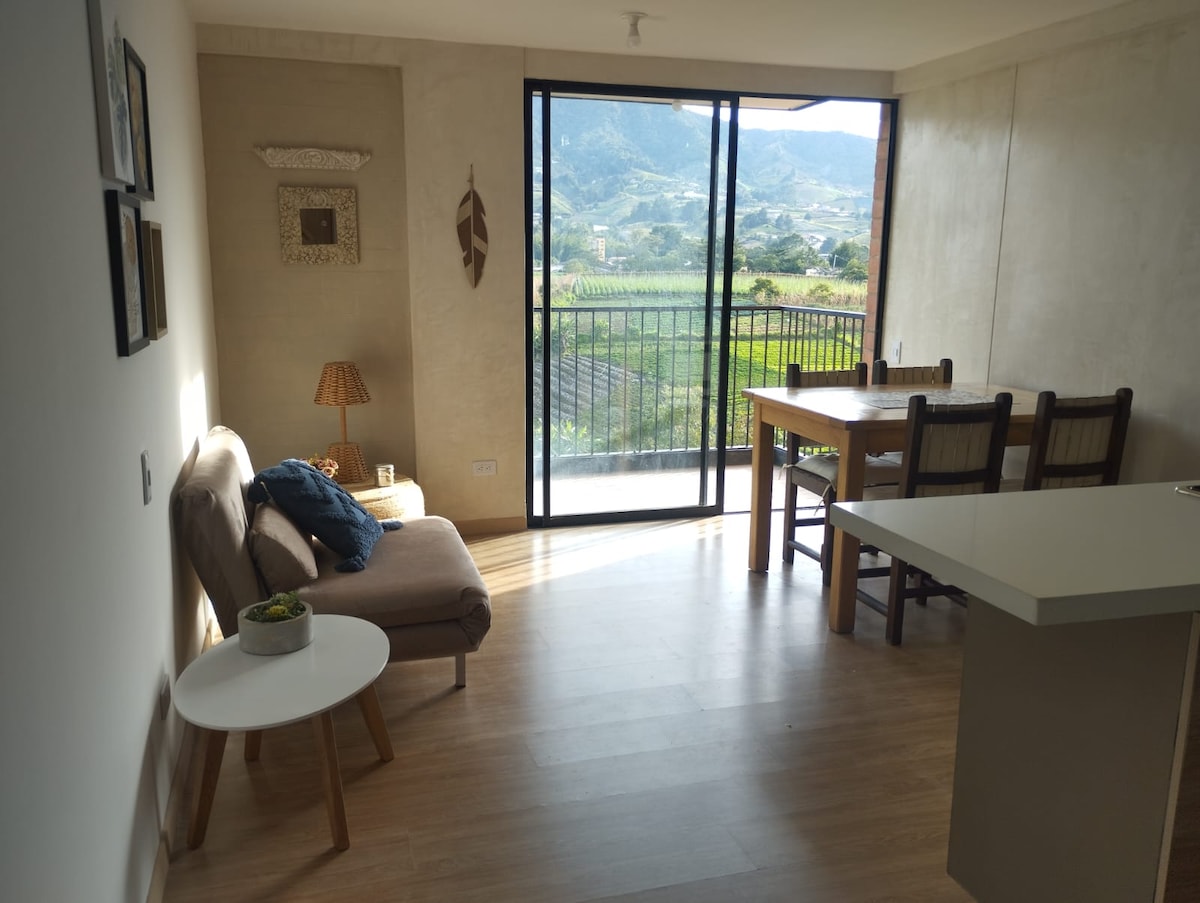Memesan dengan kami Anda tidak perlu membayar biaya layanan Airbnb. Masuki apartemen baru ini yang terletak di lingkungan pribadi di Carmen de Viboral. Jendela besar memenuhi ruangan dengan cahaya alami dan menawarkan pemandangan hijau yang damai. Sangat cocok untuk pasangan, wisatawan solo, atau pengembara digital. Parkir pribadi, Wi-Fi cepat, dapur lengkap, dan ruang tamu bergaya yang dirancang untuk kenyamanan dan relaksasi. ✔ Parkir Pribadi Wi - Fi ✔ Cepat Dapur ✔ Lengkap ✔ Smart TV ✔ Pemandangan yang Tenang Kami menentang ESCNNA.