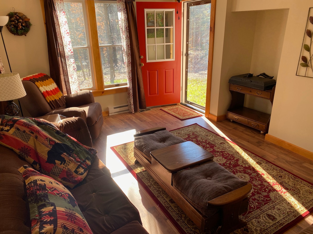 Pondok Adirondack yang Damai. Kamar Besar dengan Perapian Kayu Bakar. 5G Wifi. Tempat Api Luar Ruangan. Kayu Bakar Gratis. Teras yang Disaring. Tepi perairan di ujung jalan dengan dua Kayak. Fasilitas lengkap, dapur, dan Peralatan. Pemanggang. Permainan dan Buku. 15 hektar hutan. Naik Mobil Salju dan Memancing di Es. Elang, Burung Hantu, dan banyak Bintang. Kamar mandi kecil. Dua Kamar Tidur. 50 menit ke Saratoga, 60 menit ke Lake George, 10 menit ke peluncuran perahu, hiking/bersepeda, restoran, barang antik/toko, toko kelontong, gas, apotek, dll.