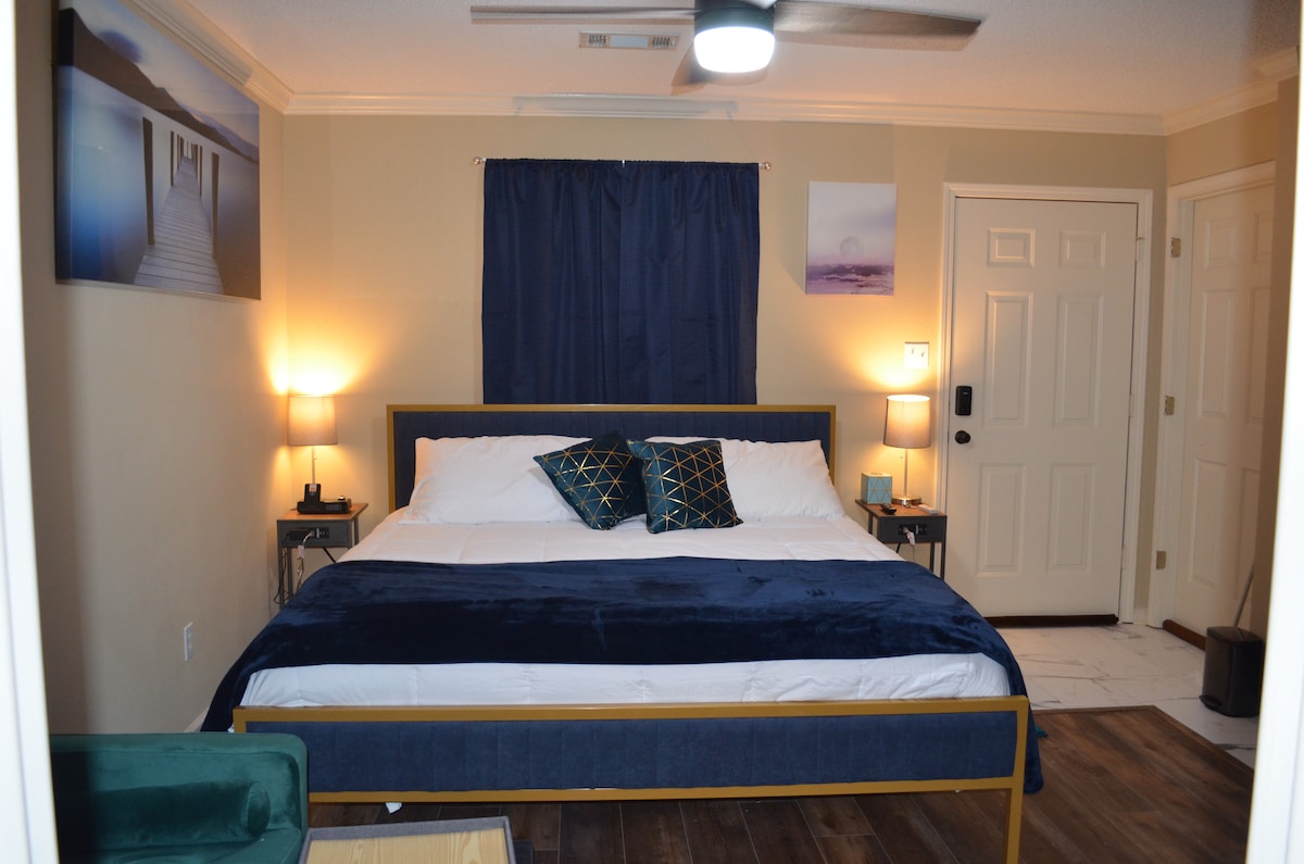 Pintu masuk pribadi ke suite bintang 5 1br/1bt ini sarat dengan fasilitas dan perlengkapan mandi dan minuman gratis. Nikmati semua fasilitas di Diamondhead seperti kolam renang, lapangan golf 18 lubang, taman bermain, disc golf, dan lapangan basket dan tenis yang terang. Nikmati suite yang dilengkapi dengan bar kopi swalayan lengkap, dan kulkas/freezer dengan makanan ringan dan minuman yang dikemas secara individual. Tanyakan tentang satu malam di akhir pekan, jam kolam renang.