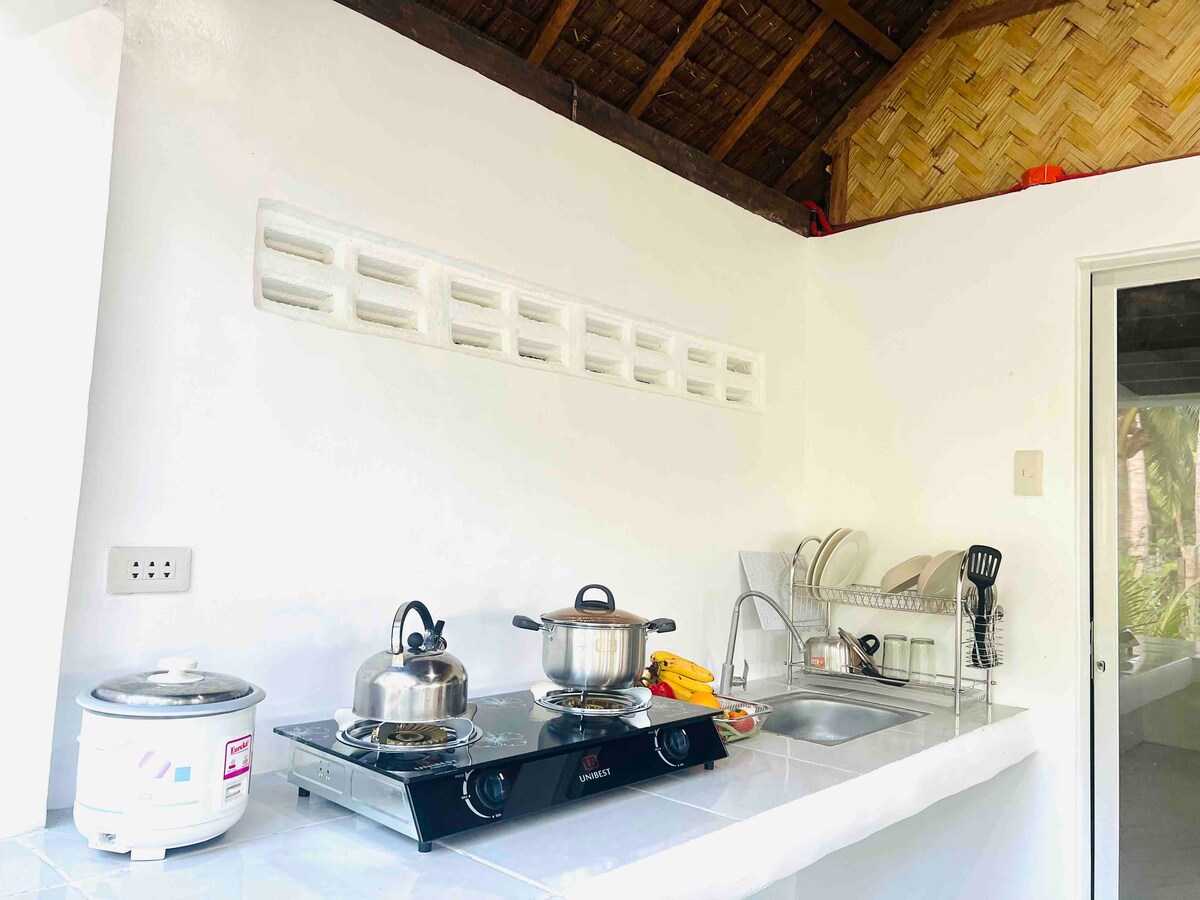 Please indicate total number of people because rates vary. AC rooms have their own bathrooms with hot/cold shower. There is a functional kitchen with basic condiments, and a spacious living area. Wifi is via Starlink. A standby generator is available for power outages (but not for ACs). Booked guests can use the resort's pool and amenities. Pets allowed (with requirements). Note: For bookings of 2 people or less, only 1 room be be opened.