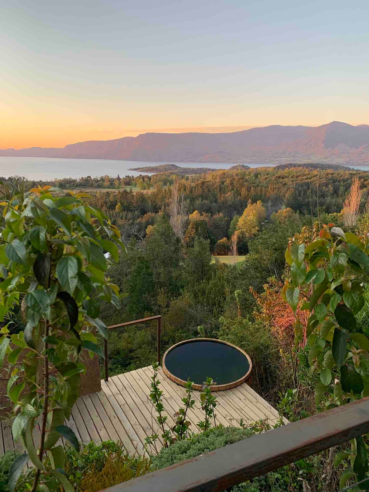 BlackHouse* Pucón, pemandangan danau dan tinaja.