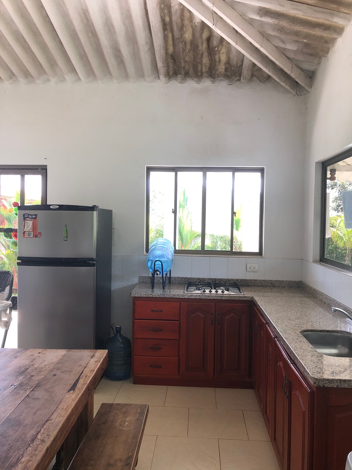 Tentu saja! Berikut ringkasan jelas yang bisa kamu salin: Casa Oasis di Acacías memiliki semuanya: 3 kamar tidur dengan AC dan TV, ruang tamu dengan TV dan soundbar, dan pusat hiburan tambahan. Kedua kamar mandi menyediakan air panas. Nikmati teras dengan BBQ dan perabot luar ruangan, dapur lengkap, dan dua ruang kerja dengan meja, monitor, keyboard, dan mouse. Dengan garasi pribadi dan hanya beberapa menit dari pusat kota, tempat ini menyediakan ruang yang damai dan nyaman yang siap Anda nikmati.