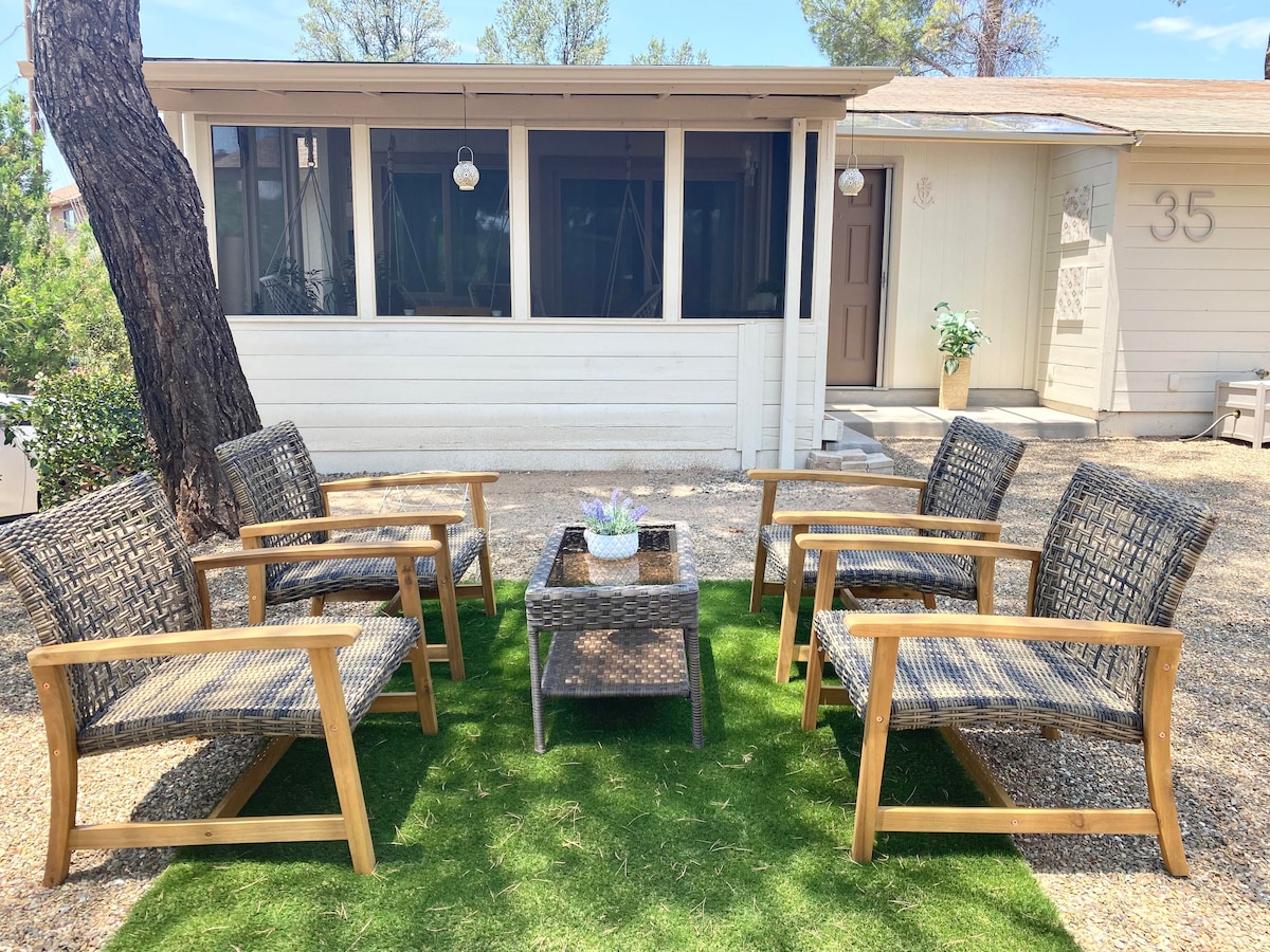 Bersantai & relaksasi di tempat yang tenang dan bergaya ini. Pengalaman Sedona terbaik Anda dengan langit malam yang luas, matahari terbenam, pemandangan epik, 5 menit berjalan kaki ke lubang renang sungai, serta pendakian yang luar biasa di dekatnya, jalur punggung bukit dan batu licin rahasia. Sederhana namun elegan, rumah satu kamar tidur dengan penyewa jangka panjang di lantai atas di ruang terpisah mereka. Kamar mandi digunakan bersama & memiliki toilet kompos, pancuran, dan wastafel yang canggih. Merasa jauh dari semuanya namun 10 menit ke semua fasilitas di kota.