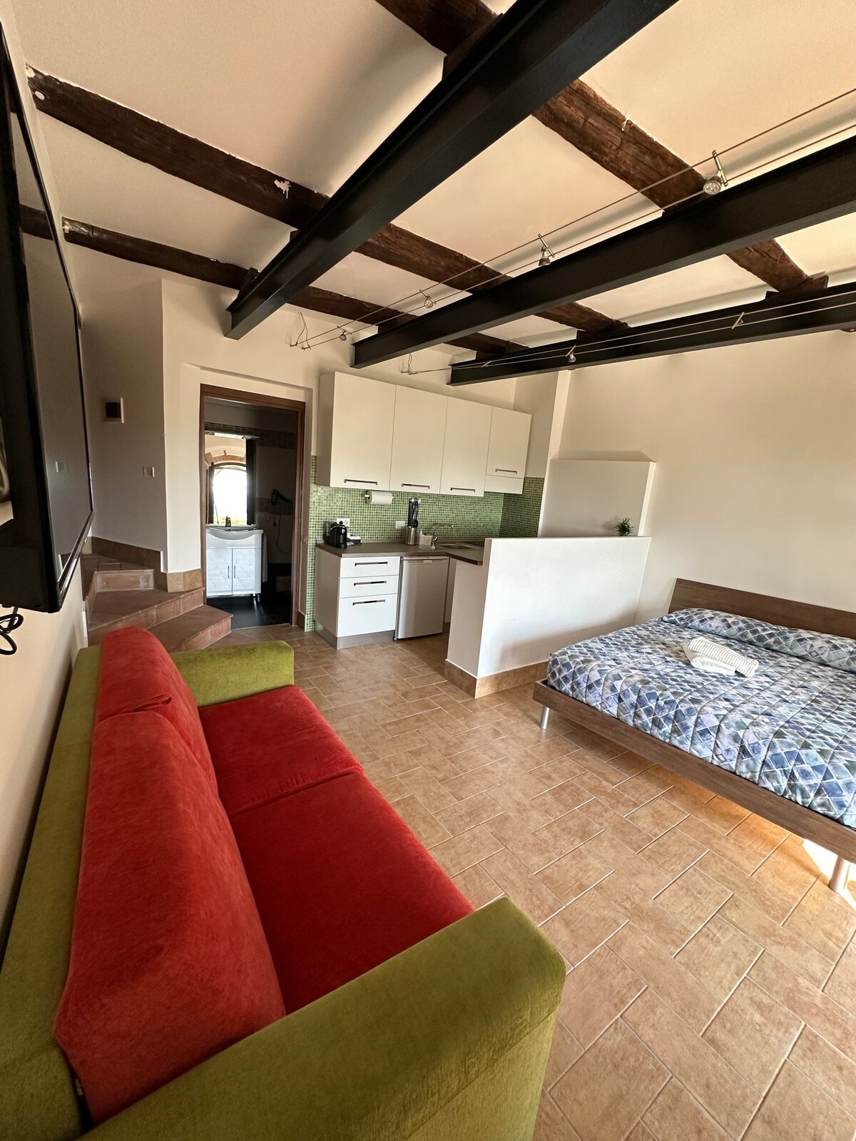 Rilassati e ricaricati in quest’oasi di quiete ed eleganza. Maria Suite Home è un raffinato bilocale recentemente ristrutturato nel centro storico di Torrita Tiberina, con balcone panoramico, arredi di charme e comfort moderni. Un luogo intimo e accogliente, nato da un gesto d’amore di mia madre, Maria. Qui ti aspettano la bellezza della natura, la vista sul Tevere e il calore autentico di una casa fatta con il cuore. Dati di registrazione: IT058106C2EPTKCZ2J