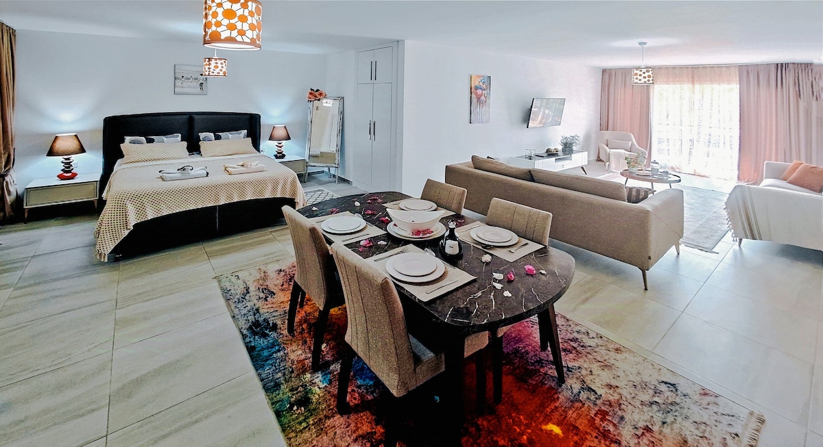 Anda bisa bersantai dengan tenang sebagai keluarga di Apartemen Residence Studio kami yang mewah dan berperabot lengkap di Siprus Utara, di tepi laut, dengan pemandangan Mediterania yang luar biasa. Jika mau, Anda bisa berenang di laut dengan pantai pasir dalam waktu 2 menit berjalan kaki atau Anda bisa menikmati kolam renang luar ruangan dan kolam renang dalam ruangan. Anda bisa mendapatkan manfaat dari sauna, mandi uap, dan alternatif hamam Turki, Anda bisa berolahraga di gym Makanan Anda di dapur Anda sendiri anda bisa melakukannya atau Anda bisa menjangkau restoran di sekitarnya dengan berjalan kaki.