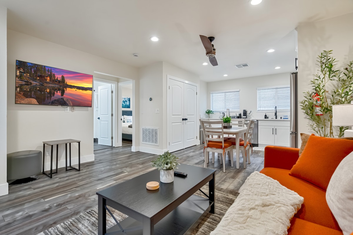 Downtown Truckee, On The River, dengan generator! Apartemen satu kamar tidur yang indah, nyaman, dan direnovasi sepenuhnya didekorasi dengan selera tinggi. Kantor hari kerja kecil di lantai atas. 80' dari bagian depan sungai, teras besar, tangga batu ke sungai, di tempat parkir. Berjalan kaki ke pusat kota namun benar - benar pribadi. Catatan: Karena alergi petugas kebersihan yang sangat serius, kami tidak bisa mengakomodasi hewan termasuk hewan pemandu. Dilarang merokok, maksimal 2 orang tamu. Tidak ada anak di bawah 13 tahun. Rumah 3 kamar tidur di sebelah juga tersedia STR lic. #008814