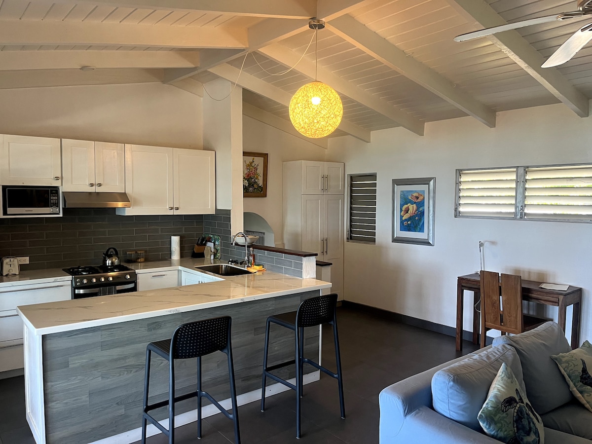 Cozy Oceanview Studio located in Crosbies, St. John's Antigua. Guests love this chic cozy studio for its breathtaking ocean view, lush garden space, easy access to parking, peaceful tropical ambiance, and the simple comfort of a good night's rest on a queen size memory foam bed. Close to everything and located in a safe and spacious friendly upscale neighborhood close to grocery, gym and shopping plaza. Onsite car rental, paddleboards, SIm cards, airport transfer, and laundry service available.