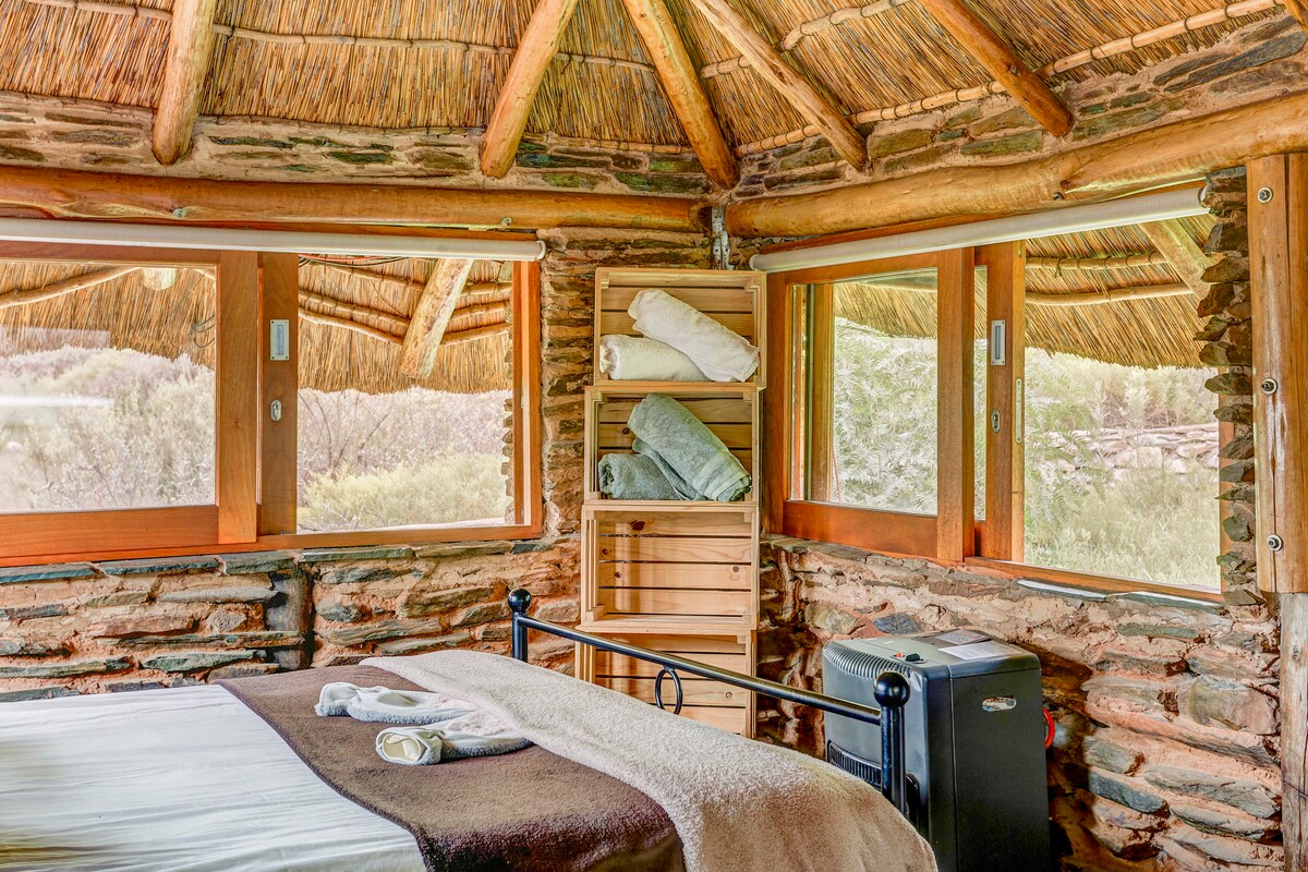 Suara alam dan pemandangan 360° yang indah dapat dinikmati dari pondok batu Anda sendiri Di sinilah nama Saggy Stone berasal untuk tempat pembuatan bir kami. Kabin di pegunungan di atas peternakan kami di mana Anda bisa menikmati liburan romantis - duduk di bak mandi air panas, menyaksikan langit malam. Salah satu dari dua unit eksklusif yang terselip di kloof, Anda merasa bermil - mil jauhnya dari stres dan kekhawatiran kehidupan sehari - hari. Paling baik diakses dengan 2x4, 4x4, atau SUV (bakkie)