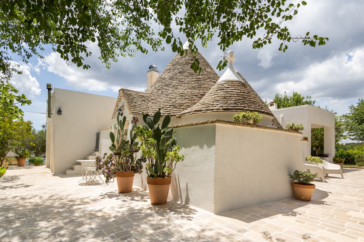 Trullo kami berada di pusat Barsento, daerah perbukitan Apulian dengan dinding batu kering dan pemandangan yang menakjubkan, beberapa kilometer dari Alberobello. Ideal untuk pecinta alam dan wisata, masa inap yang santai atau untuk akhir pekan romantis yang sederhana. Rumah ini nyaman menampung hingga 5 orang berkat ruang dalam dan luar ruangan yang luas. Taman ini disiapkan untuk menghabiskan hari - hari yang menyenangkan di luar ruangan atau saat - saat romansa dan relaksasi dengan jacuzzi luar ruangan.