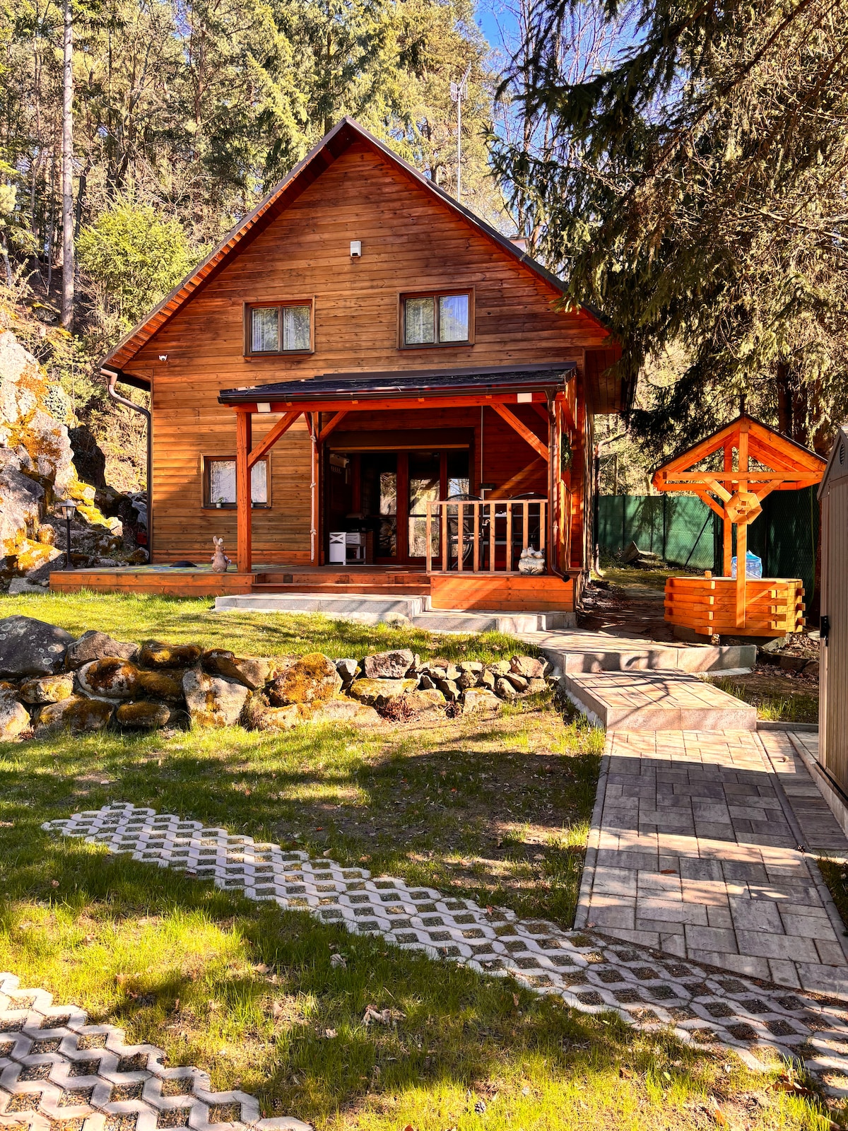 Berliburlah ke kabin bersejarah yang telah direnovasi dengan cita rasa tinggi. Hangatkan diri di sauna berbahan bakar kayu, lalu dinginkan diri di kolam alami. Nikmati suara air terjun, hutan, dan alam di sekitarnya. Bersantai di dekat jendela dengan api yang berderak. Kenyamanan mewah termasuk sistem suara Bowers & Wilkins, dapur lengkap yang didaur ulang dari pintu kayu tua, dan kamar mandi dengan lantai berpemanas dan pancuran hujan. Sangat cocok untuk masa inap romantis atau bekerja jarak jauh dengan monitor Dell. Hanya 30 menit dari Praha.