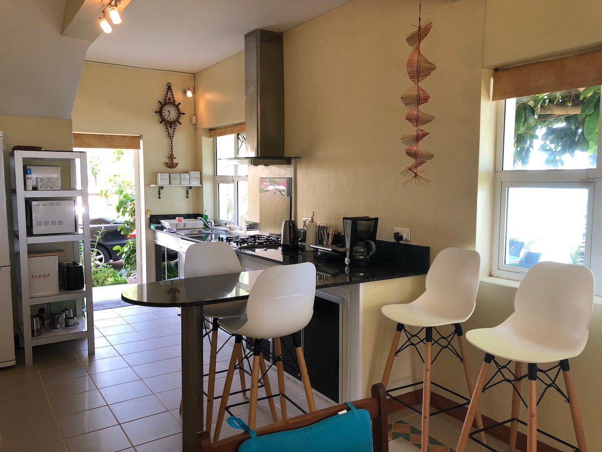 Properti pantai yang indah di daerah Tamarin Bay yang sangat tenang ini baru saja direnovasi . Kami terletak di antara laut dan sungai dan hanya berjarak 30 langkah dari pantai pribadi yang indah di dekat. Ideal untuk keluarga hingga 6 orang dengan 3 kamar tidur besar, dua kamar di lantai atas, kamar tidur utama di lantai bawah menghadap pantai. Sebagai penawaran khusus, kami akan menyediakan mobil sewaan gratis selama durasi menginap Anda bersama kami menghemat setidaknya 25 euro per hari.
