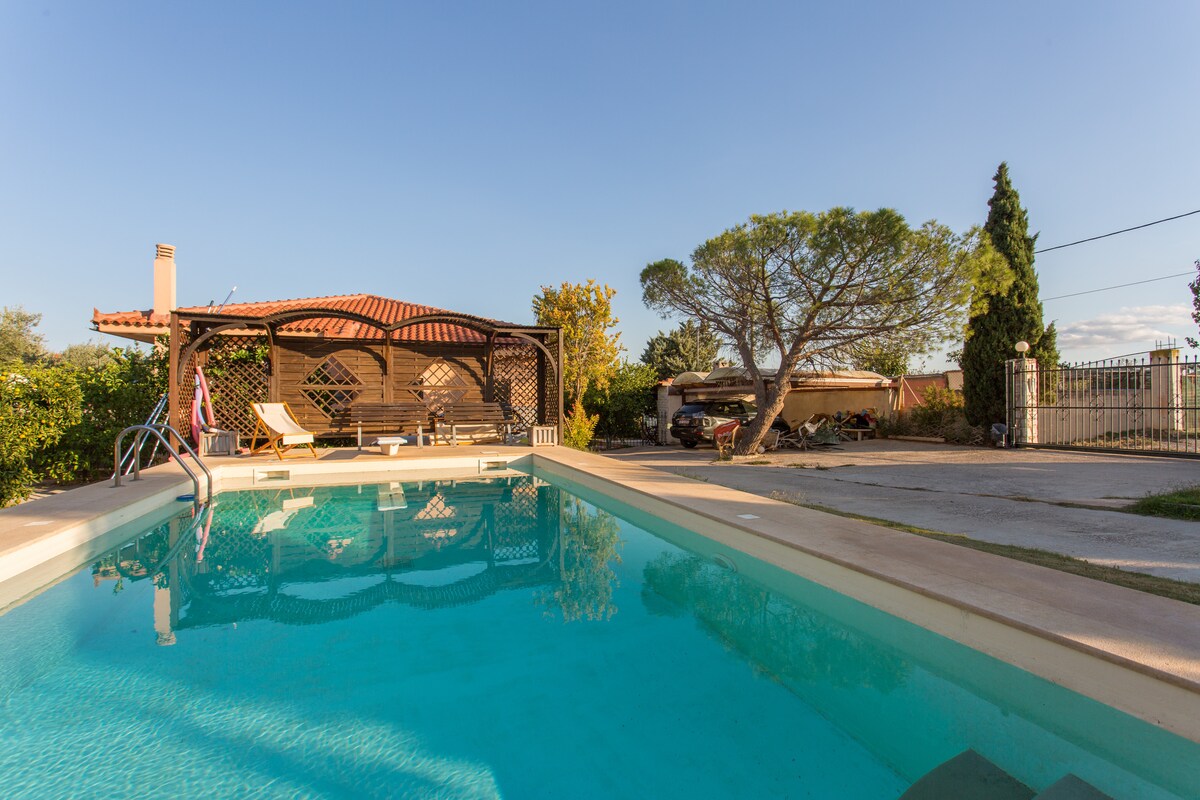 Vila seluas 170 m persegi yang memberikan berbagai kenyamanan. Kolam renang dengan BBQ yang dibangun dari batu dan oven kayu. Pemilik memiliki taman organik dengan hampir semua buah dan sayuran yang bisa dicicipi secara gratis oleh pengunjung! Nikmati kehidupan pedesaan sambil tetap bisa mengunjungi Athena dalam waktu 15 menit dengan mobil karena rumah ini berlokasi 1 km dari pintu keluar jalan raya yang menghubungkan sebagian besar Athena. Semua kamar ber - AC, peralatan dapur lengkap, perapian, pemandangan menakjubkan dan banyak lagi....