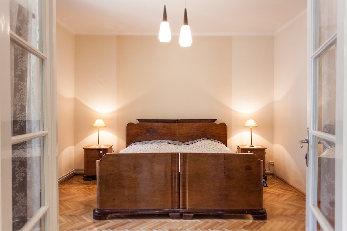 Kamar ini: - Terpisah, dapat dikunci dengan kunci - Double Bed - kasur super nyaman - Meja tulis - Lemari pakaian *** Area bersama: - Dapur - Ruang Makan - Kamar Mandi & Toilet 1 - Toilet 2 Bisa digunakan; - Mesin cuci - wifi - Sarapan: teh , kopi, susu , selai, sereal *** Flat :- lantai pertama (tanpa lift) - tidak ada AC (tetapi jendela menghadap utara) *** 5 menit berjalan kaki dari Metro Line4 & Line2, Tram 4/6 citylink, 10 menit berjalan kaki dari Stasiun Kereta Api, area Ruin Pub, 15 menit dari Sinagoga Agung.
