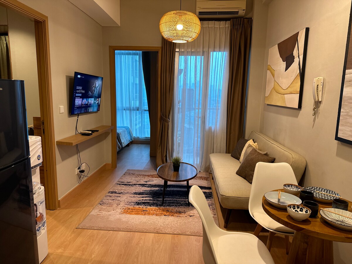 Terletak di Benhil, properti yang terinspirasi Jepang ini dilengkapi dengan TV pintar (termasuk Netflix, Disney +, HBO GO), set dapur lengkap dengan kulkas, microwave, dispenser air, dan kompor listrik, serta fasilitas dan camilan yang lengkap! Nikmati malam Anda di tempat tidur berukuran queen kami dengan jendela besar, dan balkon yang luas. Bekerja dan bersantap di meja kayu kami - wifi yang sangat baik disediakan. Futon tersembunyi tambahan juga tersedia. Juga disediakan: kolam infinity, sauna & gym, taman bermain anak - anak.