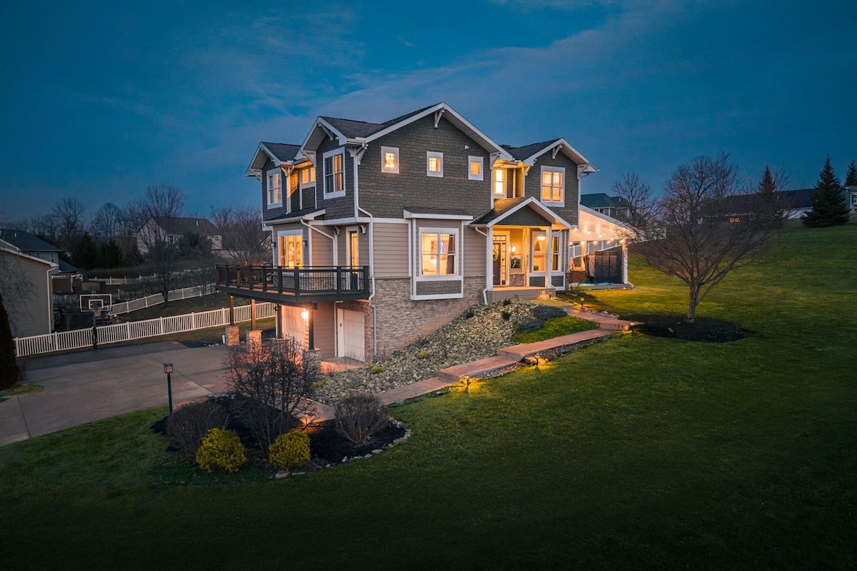 Rumah yang luas di dekat PennState dengan bak mandi air panas/perapian