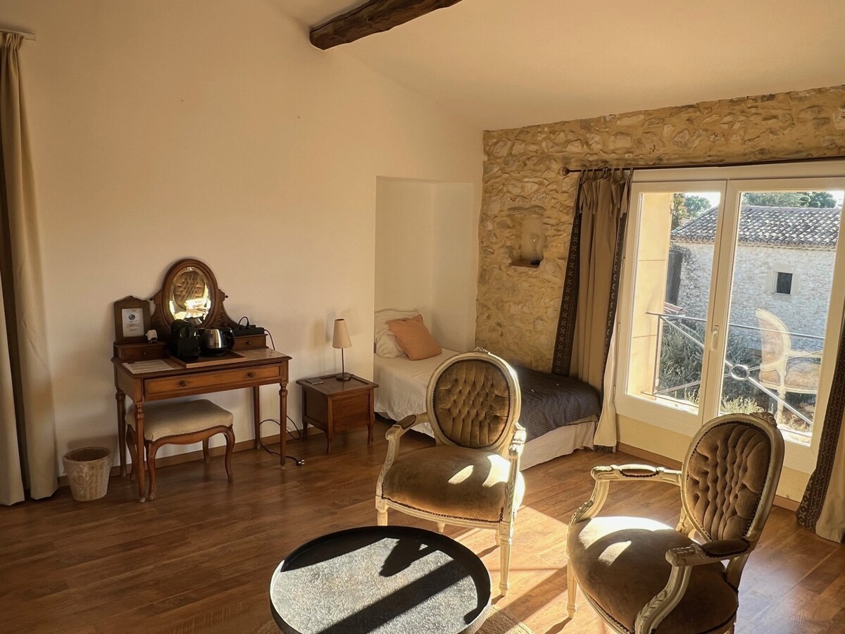 Suite berlokasi di antara Nimes dan Montpellier dan berjarak 30 menit dari pantai. Sangat didedikasikan untuk melarikan diri, beristirahat, dan bersantai. Anda akan menemukan semua kenyamanan, tempat tidur kanopi queen, Jacuzzi Amerika 3 tempat duduk asli, perapian listrik, TV 55", tempat tidur sofa, Wi - Fi, dan Netflix. Di kamar mandi Anda akan menemukan wastafel ganda serta pancuran. Di dapur, Anda akan menemukan semua yang Anda butuhkan untuk menghangatkan piring. Termasuk tempat pribadi.