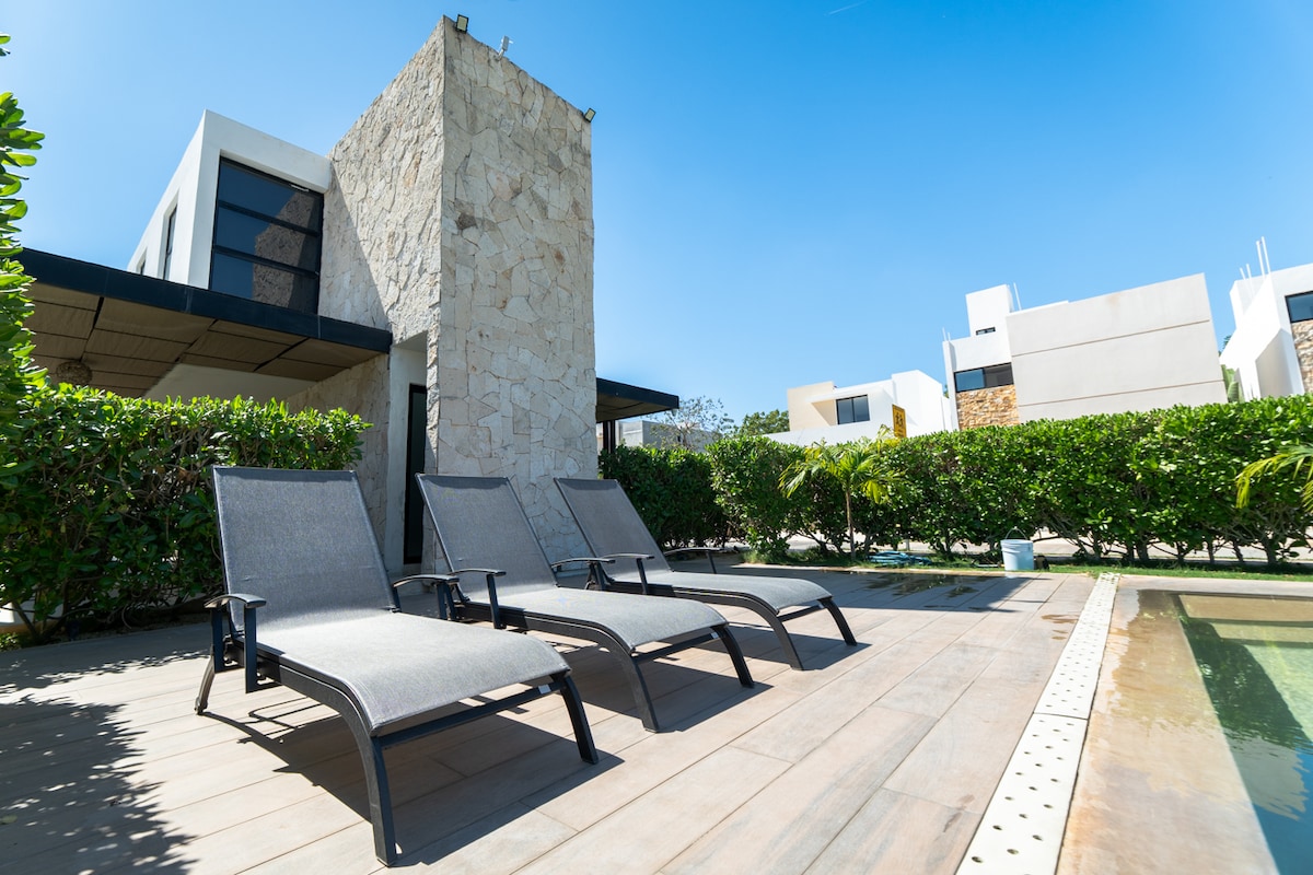 Gaya Loteng Apartemen (40 m2) di kompleks tertutup ( total 5 apartemen). Apartemen ini memiliki ruang sosial, dapur kecil dengan hal - hal dasar untuk memasak, lantai atas 1 kamar tidur dengan tempat tidur yang bagus, 1 kamar mandi. Tempat ini ideal untuk 2 orang, tetapi kami memiliki tempat tidur sofa yang bisa menampung 3 orang dengan nyaman. Tempat parkir di dalam properti. 10 menit naik mobil dari Paseo de Montejo dan Centro, dan 10 menit dari utara kota. Koneksi yang bagus dengan circuito. Parque de la Aleman berjarak 2 -3 blok.