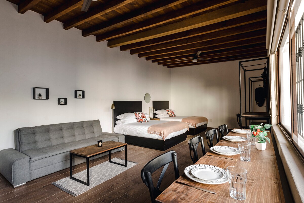 Kami mengajak Anda untuk merasakan kenyamanan dan privasi di Studio modern pedesaan kami! Terintegrasi di dalam mansion tua di pusat bersejarah Querétaro, hanya beberapa blok jauhnya dari katedral dan Teatro de la República yang bersejarah, lokasi kami istimewa di pusat kota, di daerah yang damai jauh dari kebisingan malam hari. Ayo nikmati pengalaman menginap yang tak terlupakan!