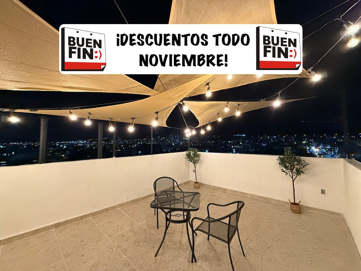 Ini adalah tempat ideal bagi para eksekutif, mahasiswa, masa inap liburan, atau untuk malam yang romantis! Dengan pemandangan spektakuler Kota Querétaro, South Center, dan Convention Center Dikelilingi oleh banyak alam dan pada saat yang sama, gerakan yang memberi energi pada kota Di salah satu area terbaik Querétaro, tempat Anda akan menemukan fasilitas premium yang hanya berjarak beberapa langkah seperti Fresko, Starbucks, Walmart Expresss, Oxxo Premium, Vegan Stores, Gyms, Restaurants & Cafes