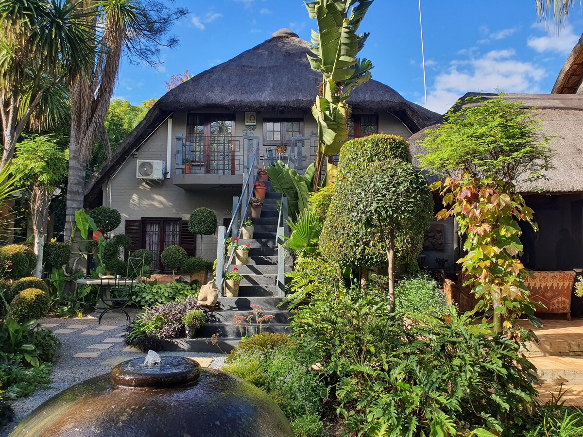 Pondok taman pribadi di desa keamanan Irene dengan semua kebutuhan dasar agar masa menginap Anda nyaman. Ideal untuk wisatawan bisnis atau pasangan liburan yang mencari rumah yang tenang dan aman saat jauh dari rumah. Kami memiliki sistem surya untuk menyediakan listrik selama loadshedding. Terletak dengan nyaman 20 menit dari OR Tambo, dalam jarak 2km dari jalan raya utama. Ada juga banyak restoran indah di dekat sini, termasuk Irene Dairy Farm dan Red Barn untuk pecinta alam.