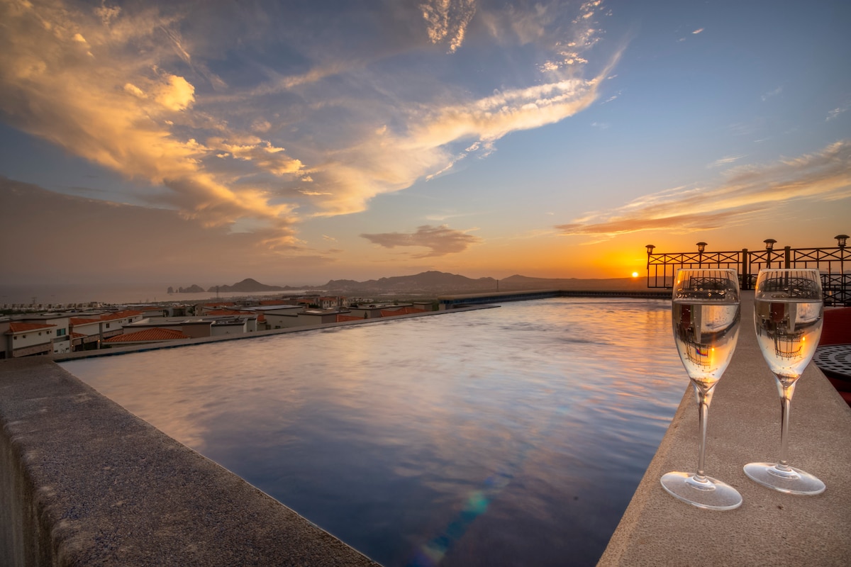 Tempat api unggun di atap saat matahari terbenam. Kolam renang infiniti di sore hari. Pantai Medano, berjarak 5 menit. Penthouse di lantai atas ini adalah basis Anda untuk menikmati Cabo persis seperti yang Anda inginkan: pagi yang santai dengan kopi dan pemandangan Pasifik, atau seharian penuh di luar dengan perlengkapan pantai yang sudah dikemas untuk Anda. Muatan 5 orang dengan nyaman di 2 kamar tidur. Dapur lengkap. Keamanan 24/7. Concierge siap dipanggil. Satu-satunya tugas Anda? Datang.