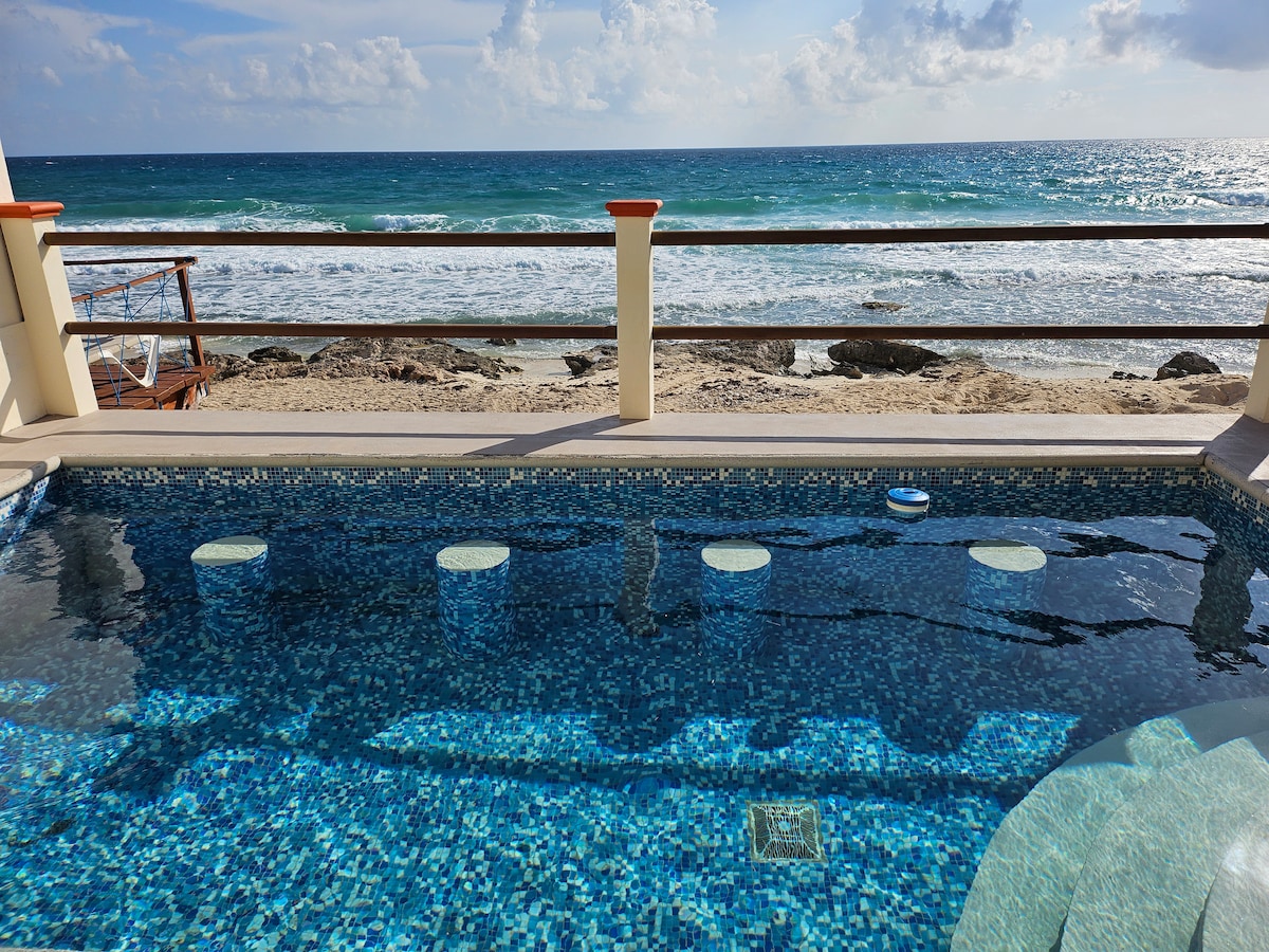 Rumah bergaya Meksiko pribadi kecil di samping pantai di Isla Mujeres!Dua kamar tidur, dua kamar mandi lengkap, dapur kecil dengan perlengkapan dasar untuk memasak, kulkas, dan teras dengan pemandangan laut! Rumah ini hanya berjarak 5 menit berjalan kaki ke pusat kota Isla Mujeres, pasar, bar, restoran, pantai Playa Norte.