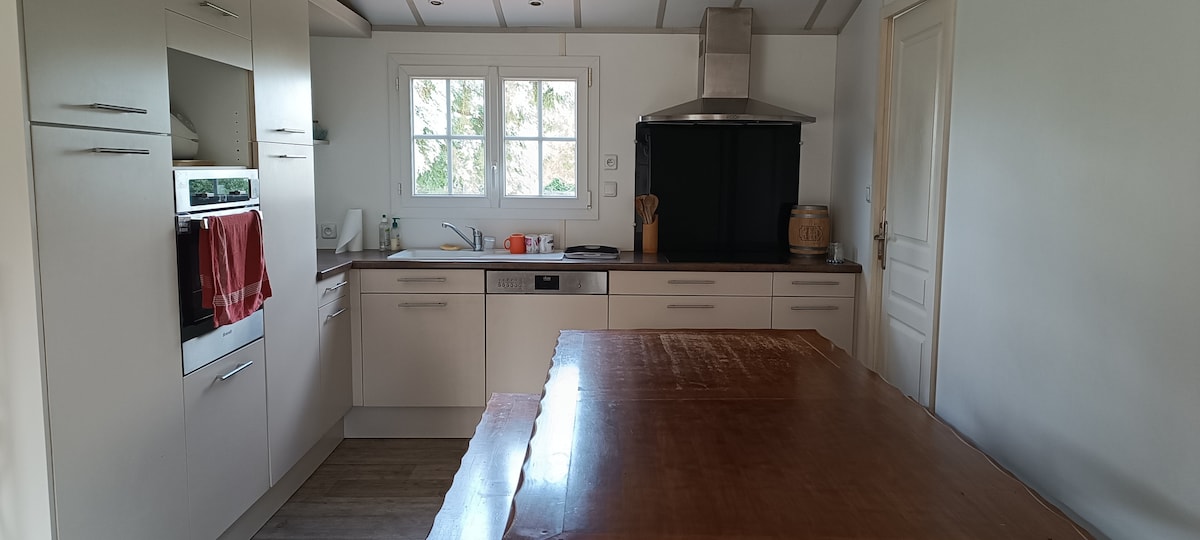 Rumah seluas 115m2 yang telah direnovasi di area hutan berjarak 15 km dari pantai Terdiri dari pintu masuk dengan penyimpanan, ruang keluarga, dapur, 3 kamar tidur dengan ruang ganti, 2 kamar mandi dan 2 toilet Kamar tidur 1: 1 tempat tidur queen Kamar tidur 2: 1 tempat tidur 160+1 tempat tidur 90 Kamar Tidur 3: 1 140 tempat tidur Kemungkinan untuk menambahkan 2 tempat tidur bayi untuk bayi di kamar tidur 1 dan 2. Kipas angin gantung di 2 kamar tidur dan ruang tamu Mainan/buku dan trampolin di taman ⚠️Handuk dan seprei tidak disediakan⚠️