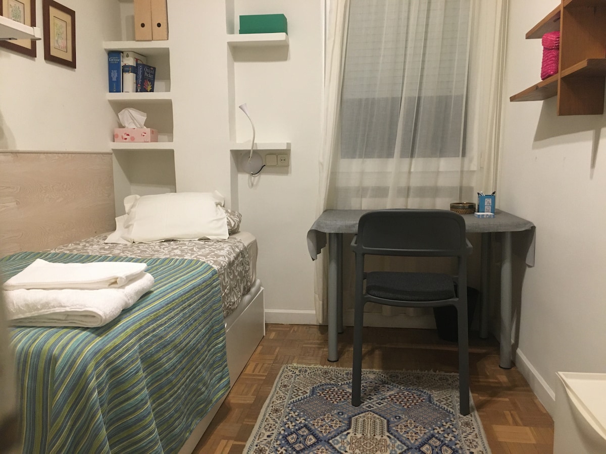 Apartemen yang damai dan modern terletak 8 menit dari Istana Kerajaan. Dikelilingi oleh taman - taman indah dengan lingkungan tinggal lokal yang sangat kaya. Tempat ini memiliki supermarket dan restoran di dekat serta jalur bus yang menghubungkan Anda ke Plaza Mayor atau Sol dalam waktu kurang dari 10 menit. Untuk reservasi 3 dan 4 orang, disediakan tempat tidur kedua. Jika reservasi Anda hanya 1 atau 2 orang dan menginginkan tempat tidur kedua, harap beri tahu kami.