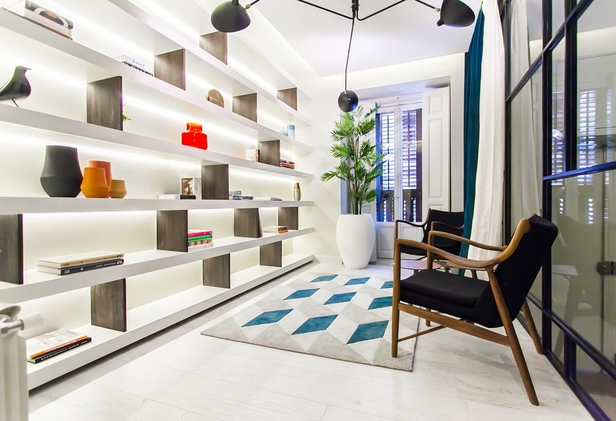 Apartemen Spanyol yang elegan, klasik, dan luas, sepenuhnya direnovasi di dalam bangunan bersejarah di Barrio de las Letras eksklusif Madrid. Memadukan pesona autentik dengan desain modern, tempat ini mencakup sarapan dan kebersihan gratis untuk masa inap lebih dari tiga hari. Beberapa langkah dari museum kelas dunia Madrid, tempat terkenal budaya, dan tempat makan mewah, apartemen ini telah ditampilkan di majalah desain terkemuka sebagai etalase kehidupan Madrid yang autentik.