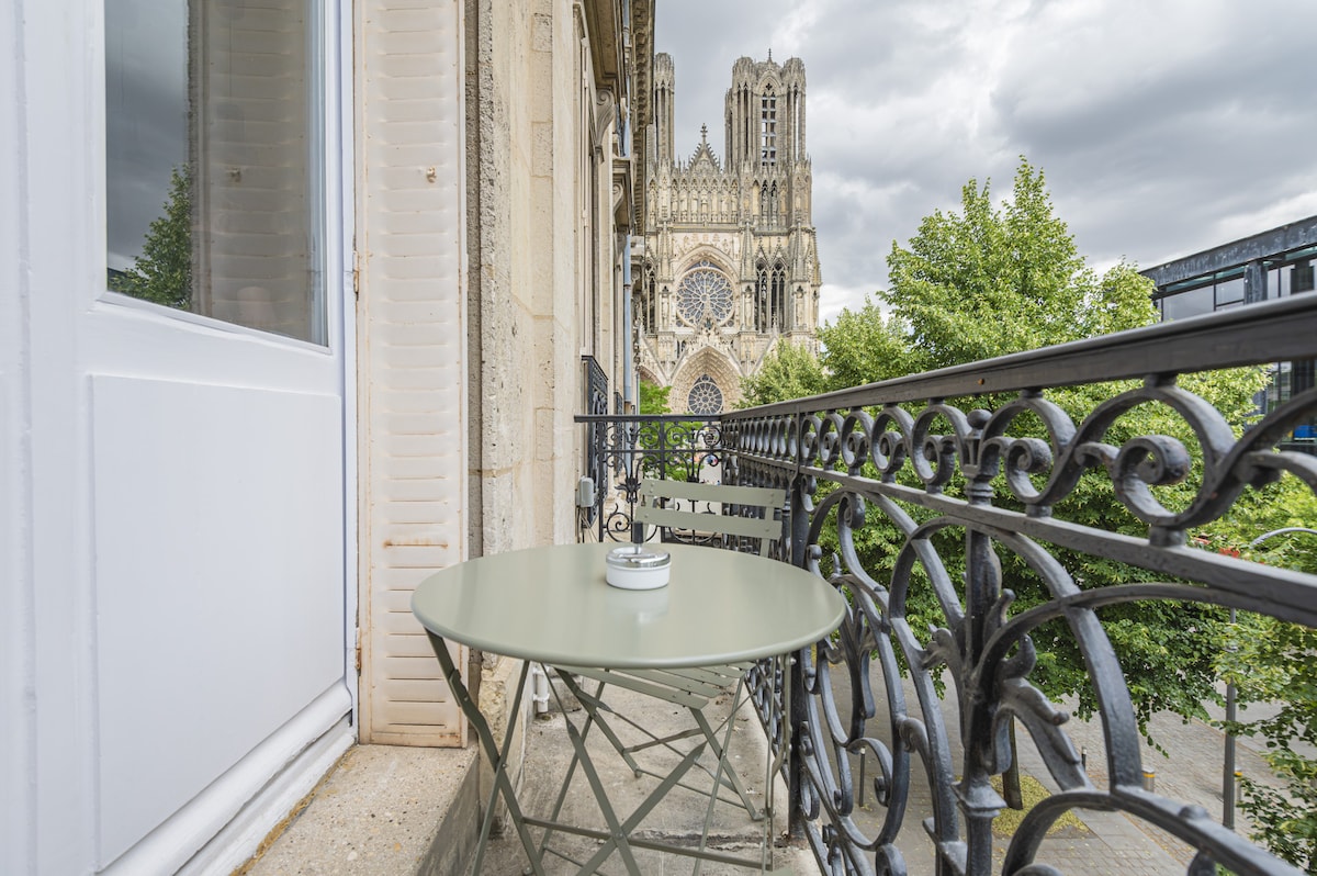 Apartemen dengan pemandangan katedral di pusat kota Reims
