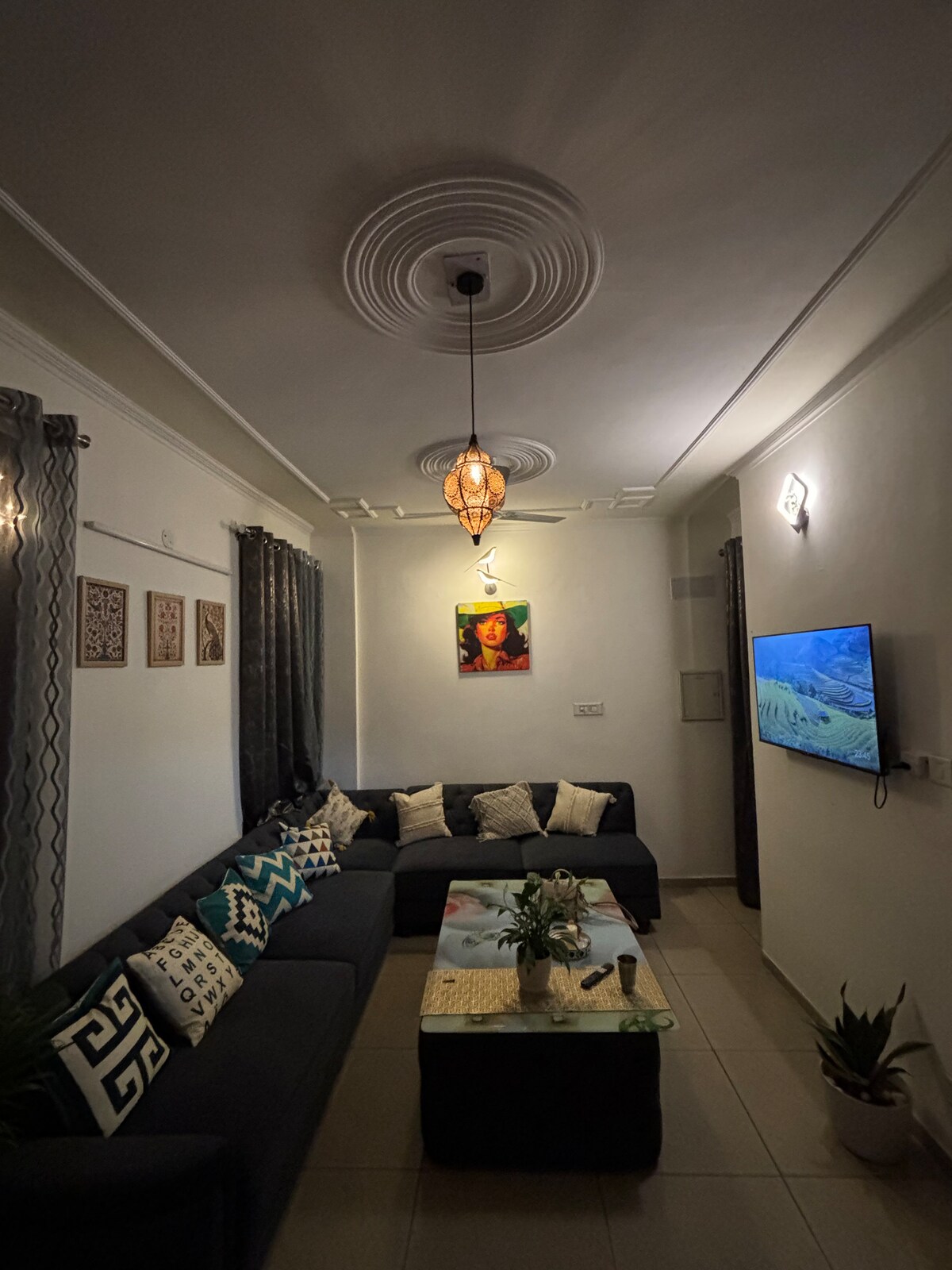 ✨ Chobara707 – A Royal Rooftop Escape ✨ A stylish penthouse with elegant interiors, a cozy bedroom, and a compact kitchen. Enjoy a large-screen tv for movie night & game night with your close ones, or step onto your private rooftop deck with swings, greenery, and open-air seating — perfect for coffee mornings, cocktail evenings, or starlit nights. Centrally located yet private, Chaubara is your serene escape above the city. 🌌 1 km from 43 busstand chandigarh 2km frm 3b2 mohali 3km frm cp67 mall