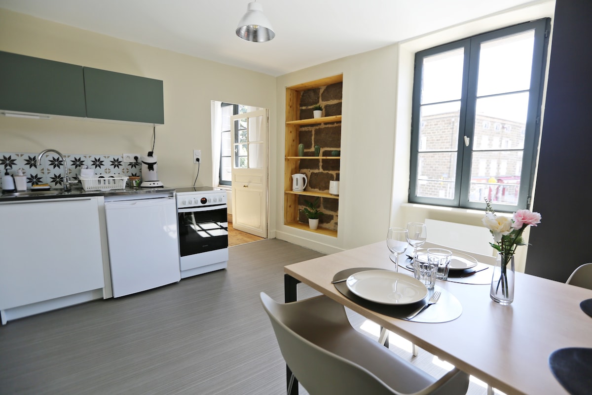 Rumah tua baru - baru ini dipulihkan dan diperbesar, 3 kamar tidur, ruang tamu besar dengan kompor kayu dan dapur super lengkap! Taman besar dan parkir 2 tertutup. Berlokasi tenang dan beberapa menit berjalan kaki ke pusat kota, tempat ideal untuk dinikmati bersama keluarga atau teman , pesona wilayah ini: berkano di Allier ( base 200 m away), memancing, bersepeda gunung, hiking, sepeda motor...