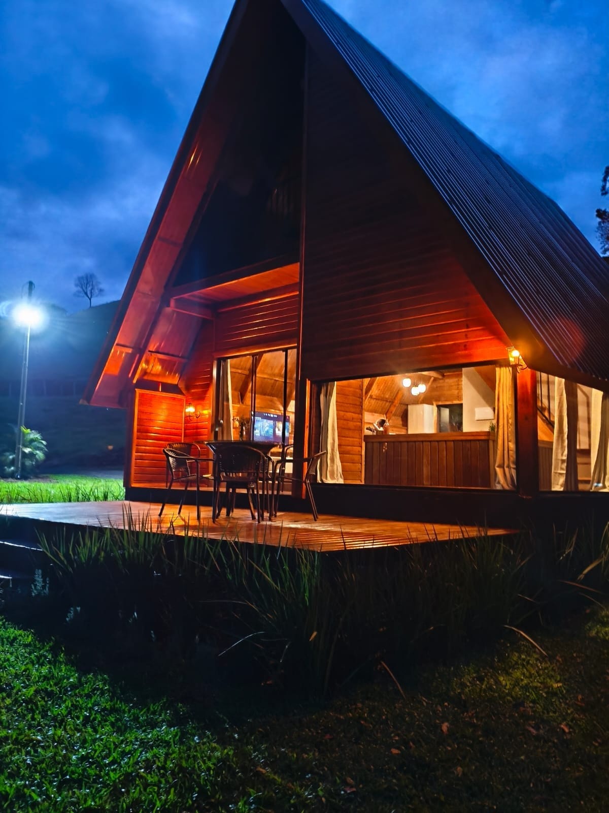 💫 Cabana Ômega – Refúgio de Amor em Meio à Natureza A 14km do Centro de Chapecó, lugar onde o tempo desacelera, som da natureza que convida ao aconchego. ❤️ O que torna a experiência única: Duas lareiras Iluminação automatizada Banheiro de vidro Churrasqueira de parilha Acesso exclusivo ao rio e à lagoa Roupas de cama, mesa e banho inclusas Café da manhã incluso Seja para celebrar o amor, renovar as energias ou simplesmente se reconectar com o essencial, a Cabana Ômega é o destino perfeito!