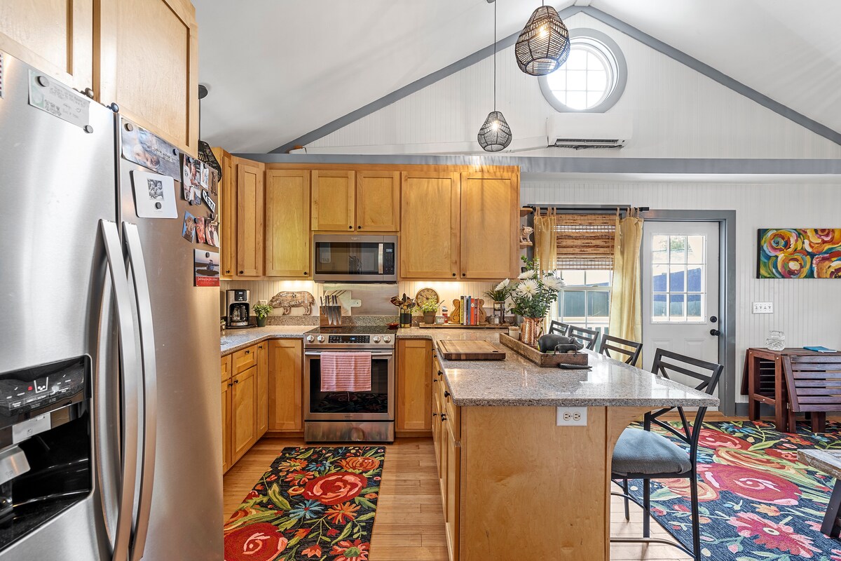 Rumah kereta yang baru dibangun ini terpisah dari rumah utama. Pondok ini berukuran sekitar 1.200 kaki persegi sehingga sangat terbuka dan luas serta pemandangan rawa dan sungai pasang surut kami. Kami memiliki area kerja terpisah dengan meja dan meja makan besar jika Anda membutuhkan lebih banyak ruang untuk bekerja atau berkumpul bersama teman - teman. Dapur lengkap, mesin cuci dan pengering, pancuran besar, masih banyak lagi. Anda mungkin tidak ingin pergi! Jangan ragu untuk duduk dan menikmati kopi atau koktail di dermaga. IZIN# OP2025-06925